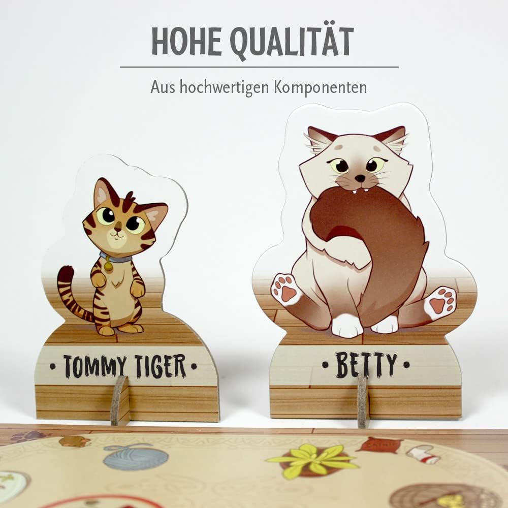 - Lieferumfang: 40 Aufgabenkarten mit Lösungen (4 Schwierigkeitsstufen, vom Anfänger bis zum Experten), 1 Spielbrett, 6 Katzenfiguren mit Aufstellern, 6 Ereignis-Chips