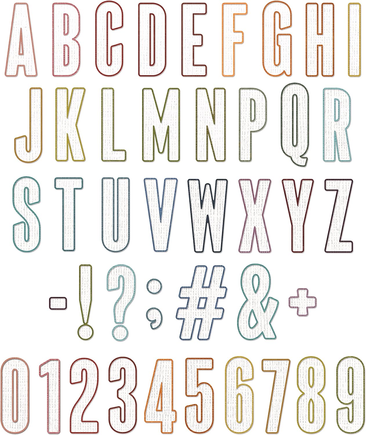 - ALPHANUMERISCHES BULLETIN — Zweischichtig und 5,1 cm hoch, dieses Alphabet Set von Tim Holtz macht jedes Wort zu einem Statement! Jede der 43 Stanzformen schneidet einen Umriss und einen inneren Buchstaben, die je nach Projekt einzeln oder zusammen