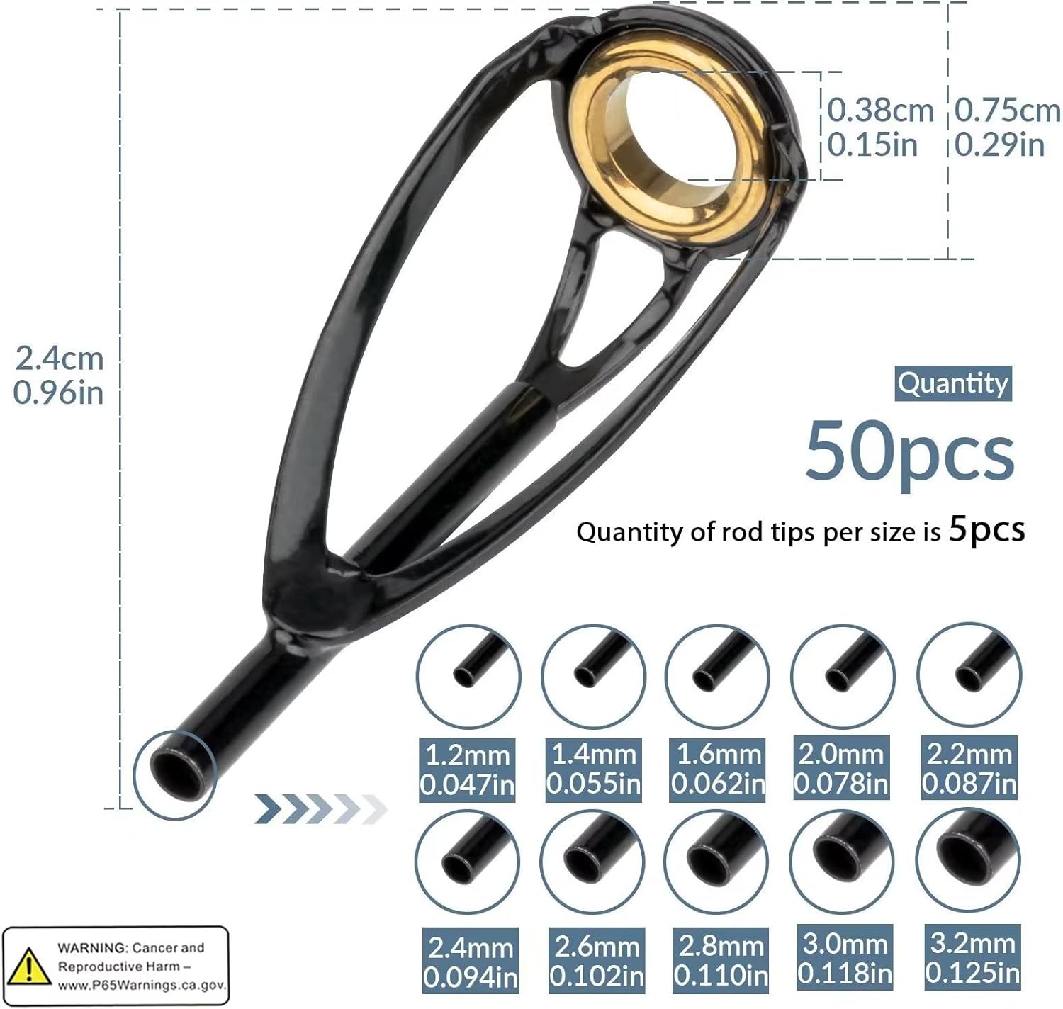 - VERSCHIEDENE GRÖSSEN-STANGEN-REPARATURSATZ: Bietet eine Vielzahl von Innendurchmessern und macht es einfach, die meisten Ruten zu montieren. Die Anzahl der Rutenspitzen pro Grösse beträgt 5 Stück. Innendurchmesser: A-schwarzer Rahmen mit goldgelbem Keramikring, 50 Stück: 1,2 mm, 1,4 mm, 1,6 mm, 2 mm, 2,2 mm, 2,4 mm, 2,6 mm, 2,8 mm, 3 mm, 3,2 mm. Das Sortiment hat fast jede Grösse, die Sie benötigen.