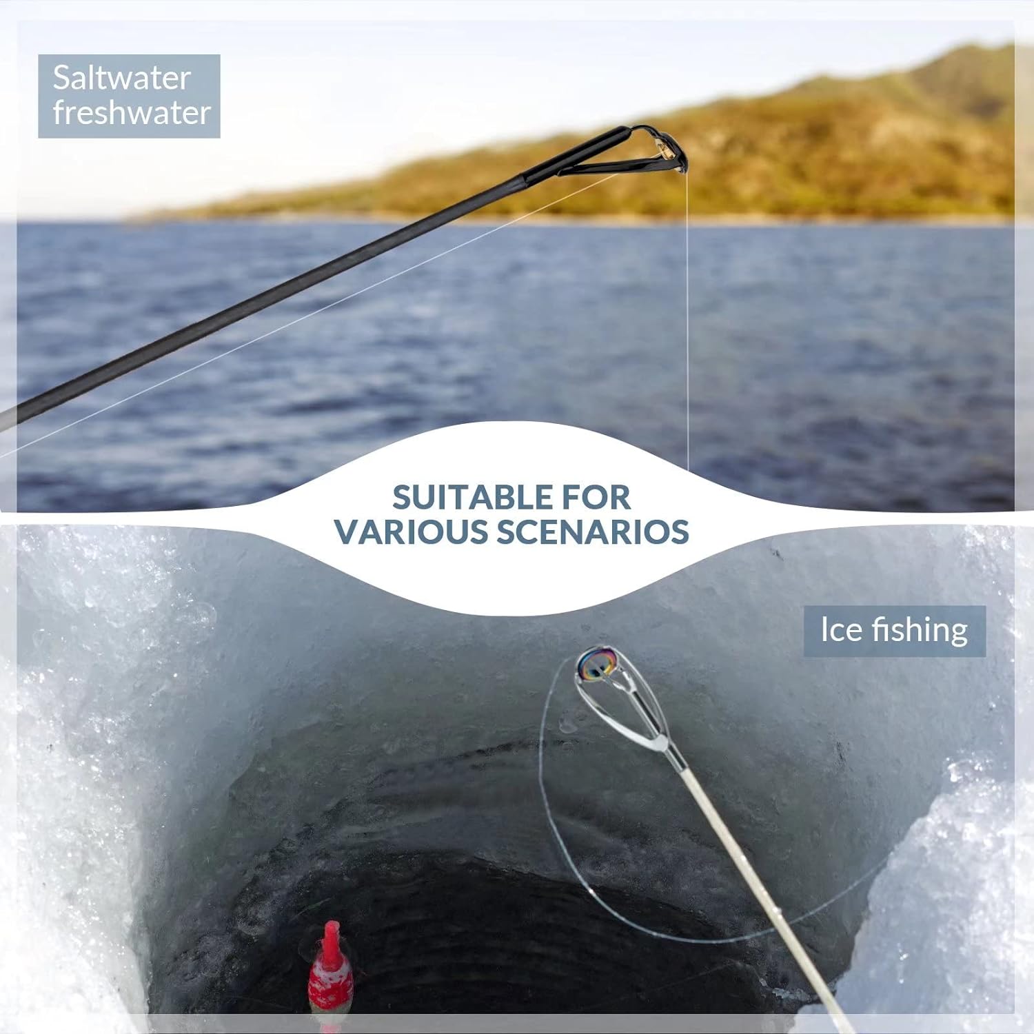 - ANTI-TANGLE-RUTENSPITZE: Das Reparaturset für Angelrutenspitzen verfügt über einen glatten Winkel, um die Schnur beim Giessen glatt und verwicklungsfrei zu halten. Das verstärkte Säulendesign auf beiden Seiten ermöglicht einen weiteren und präziseren Wurf. Die Angelrutenspitzen sind schön und nützlich und die Lebensdauer der Angelrute wird erheblich verlängert. Gut gemachte Rutenspitzen, schnelle Lösung, wenn Sie in der Klemme sind.