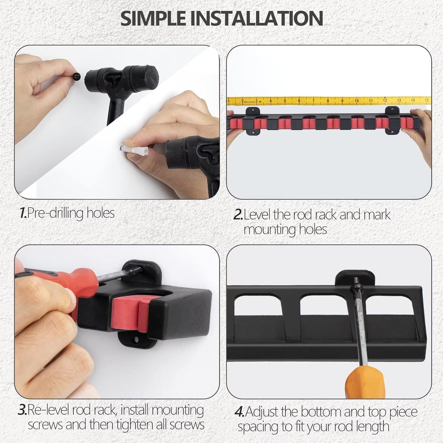 - SPAREN SIE MEHR PLATZ UND ZEIT: Verwenden Sie den Rutenhalter zur Aufbewahrung und rationellen Raumnutzung. Wählen Sie eine dünne Wand, um Ruten aufzubewahren und Ihre Angelausrüstung zu organisieren, sodass Sie weniger Zeit mit der Vorbereitung auf