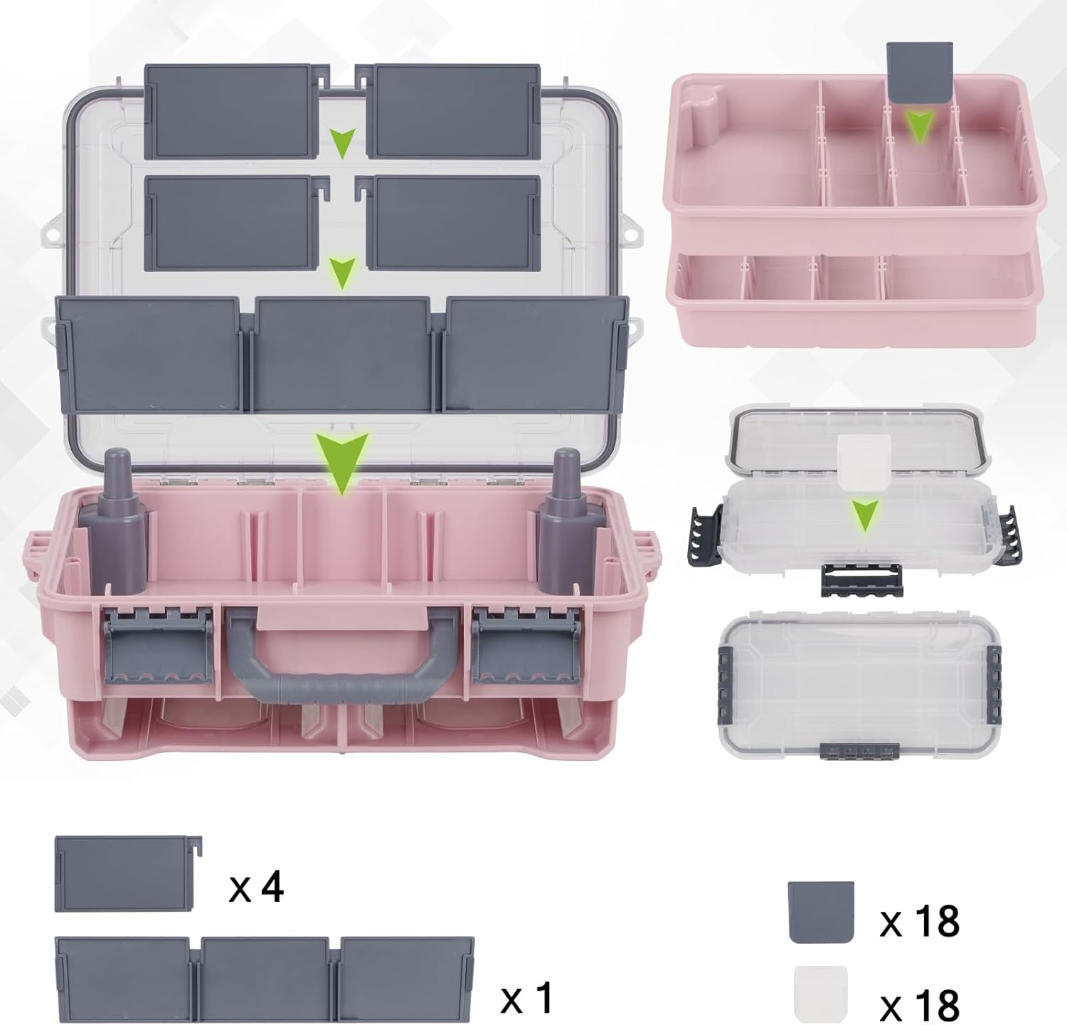 - ÜBERGRÖSSE MIT SCHIEBEFACH: Diese tackle box angeln kommt mit herausnehmbaren Schubladen und anpassbaren Trennwänden für individuelle Fächer und einfachen Zugriff auf Ihre Köder. Die zweilagige Konstruktion hat in jeder Ebene ein unterschiedliches
