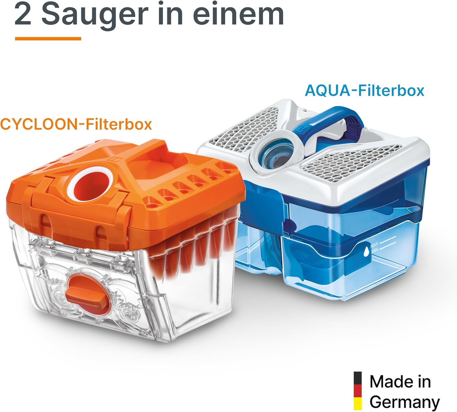 • Hygienesaugen: in der AQUA-Filterbox werden Allergene, Milben und Bakterien in Wasser gebunden und einfach mit dem Schmutzwasser entsorgt.