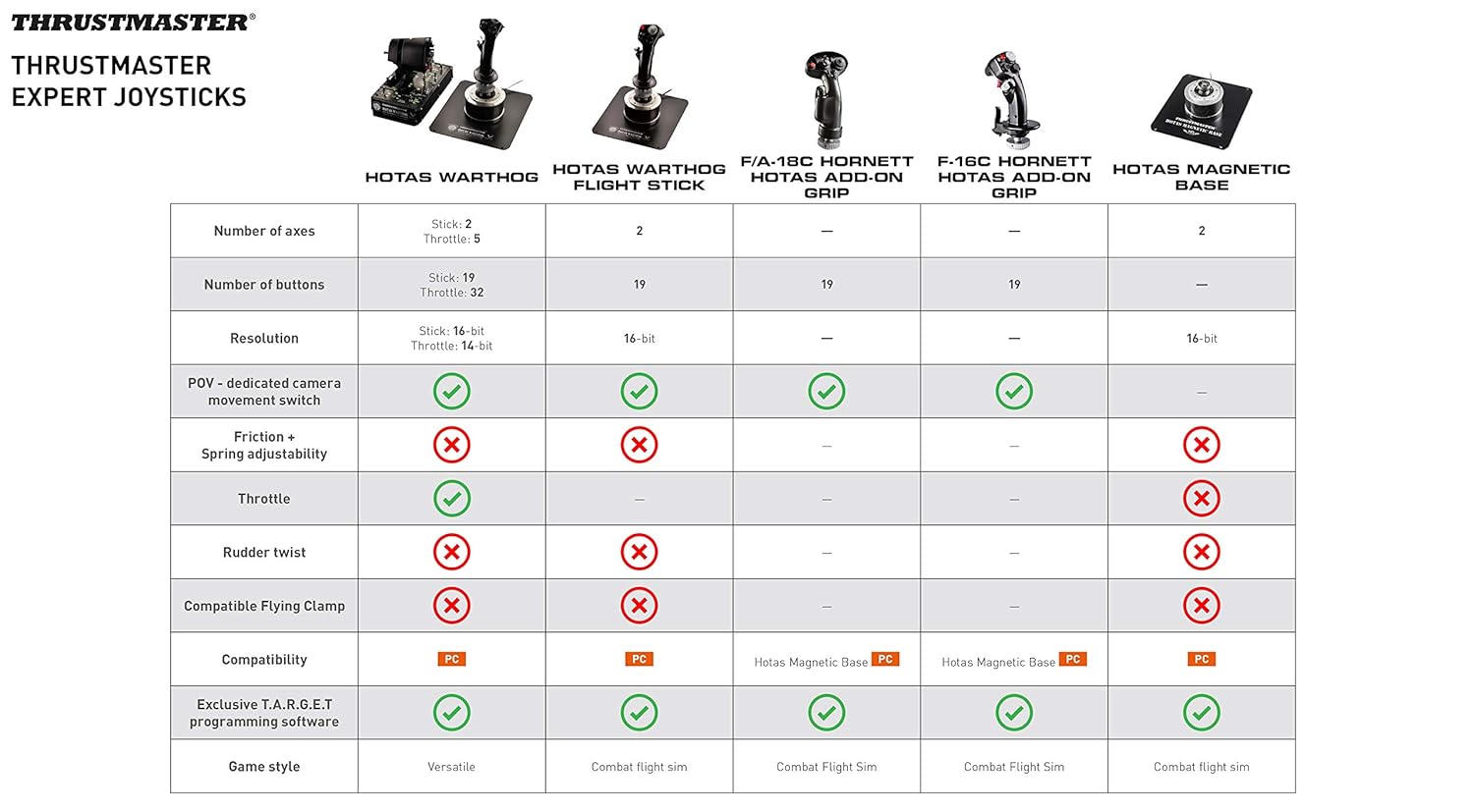 - Stand-alone HOTAS Warthog* Joystick vom Entwickler des originalen HOTAS**-Konzeptes und dem weltweiten Massstab bei FluSi-Kontrollern: Dem HOTAS Cougar und dem HOTAS Warthog.
