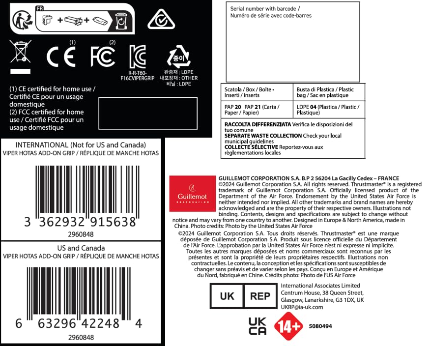 - Kompatibel mit der Base von drei Joysticks von Thrustmasters Flugsimulator-Ökosystem: HOTAS Cougar*, HOTAS Warthog und HOTAS Magnetic Base (alle werden separat verkauft; * Knopf 19 ist inaktiv auf dem HOTAS Cougar)