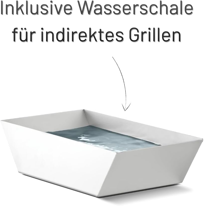 - durch die Wasserschale wird die Kohleschale in 2 Hälfte geteilt (direkte und indirekte Grillfläche) - sanftes Garen des Grillgutes über der Wasserschale im geschlossenen System unter der Haube
