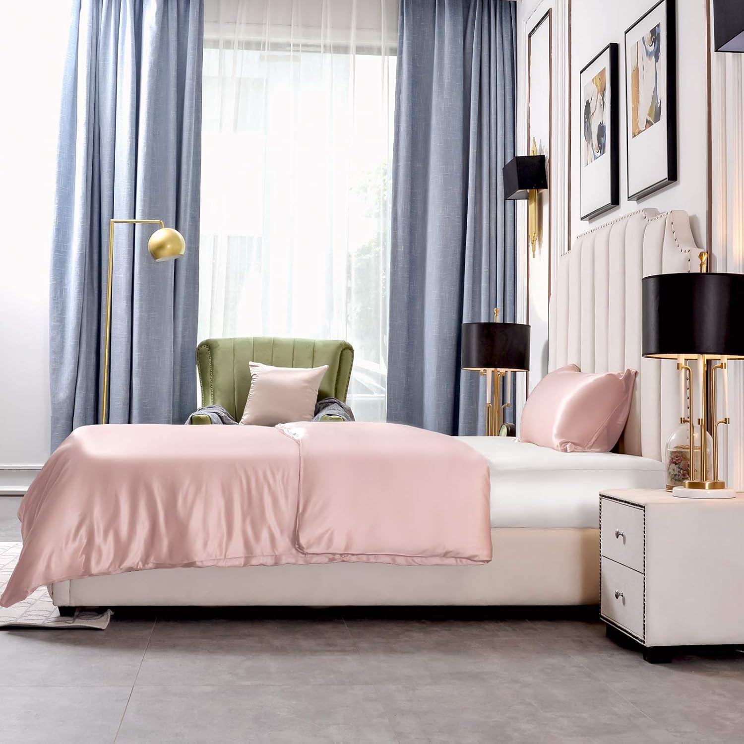 THXSILK 25 Momme Seidenbettwäsche Set 2 teilig, Bettbezug 155 x 220 cm und 40 x 80 cm Kissenbezüge,