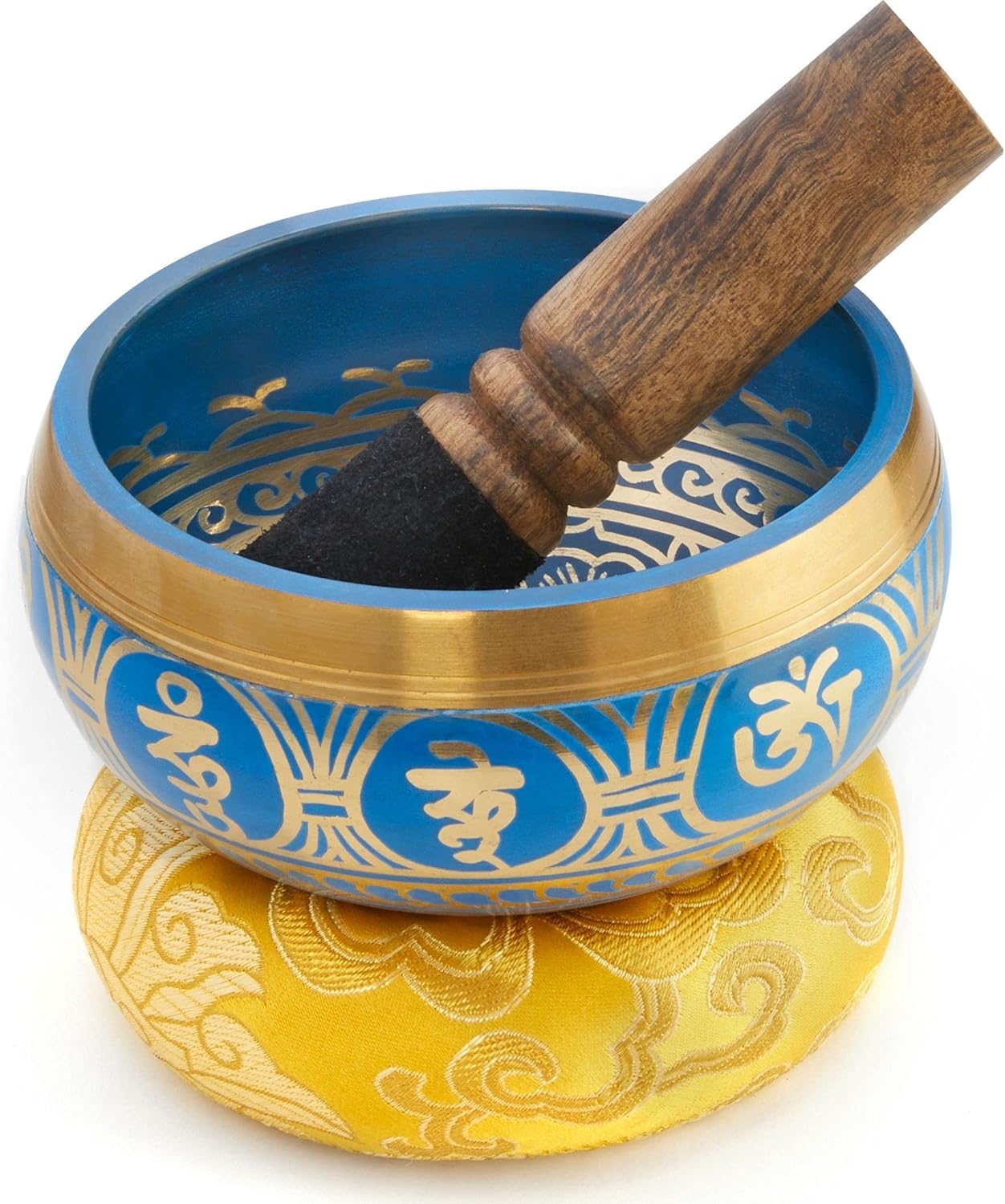 - ★ TIBETANISCHES KLANGSCHALEN-SET: Yoga Klangschale 11cm gross (Aussendurchmesser) und sehr massiv, Holz Schlegel, dekoratives Ring Kissen und eine wundervolle Geschenkbox aus in Nepal handgefertigtem Loktapapier