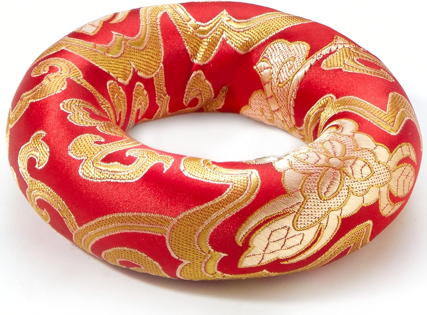 • ★ TIBETANISCHES KLANGSCHALEN-SET: Yoga Klangschale 11cm gross (Aussendurchmesser) und sehr massiv, Holz Schlegel, dekoratives Ring Kissen und eine wundervolle Geschenkbox aus in Nepal handgefertigtem Loktapapier