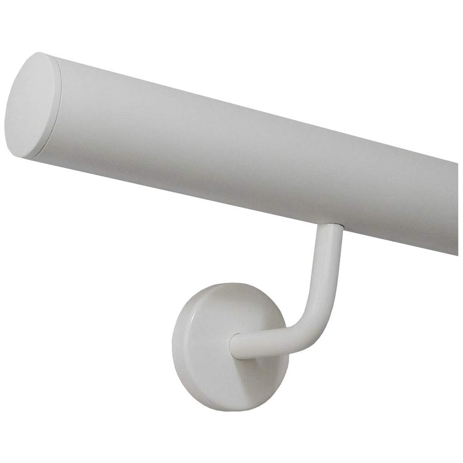- weiss pulverbeschichteter Edelstahlhandlauf Ø 42,4 mm mit gewinkelten Halter +verschiedene Endstücke ( flach, gewölbt, halbrund, Bogen, Ecke , schräg)