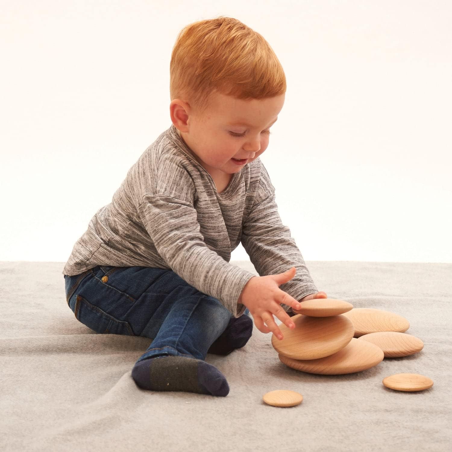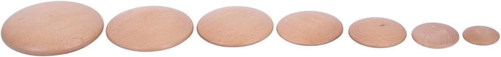 - Abgestufte natürliche Knöpfe – Die Knöpfe sind in der Grösse und in natürlichem Holz abgestuft. Ideal zum Stapeln und Spielen mit offenem Ende.