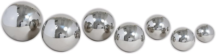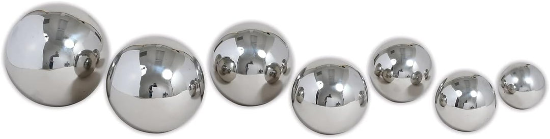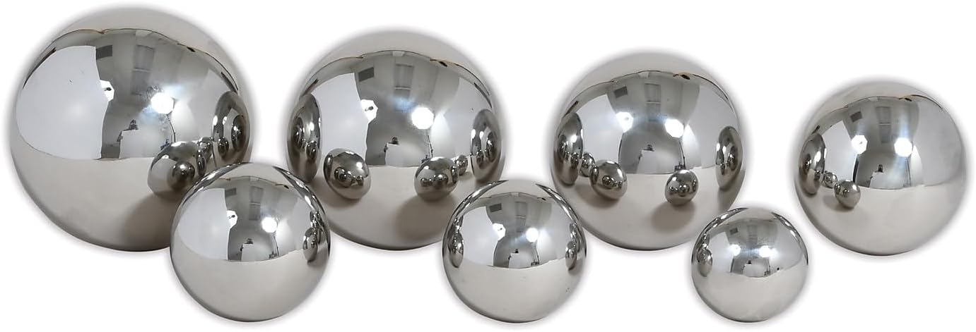 - Grösse – Die sieben reflektierenden Kugeln haben eine glatte, silbrig verspiegelte Oberfläche und haben eine Grösse von 5 cm bis 11 cm