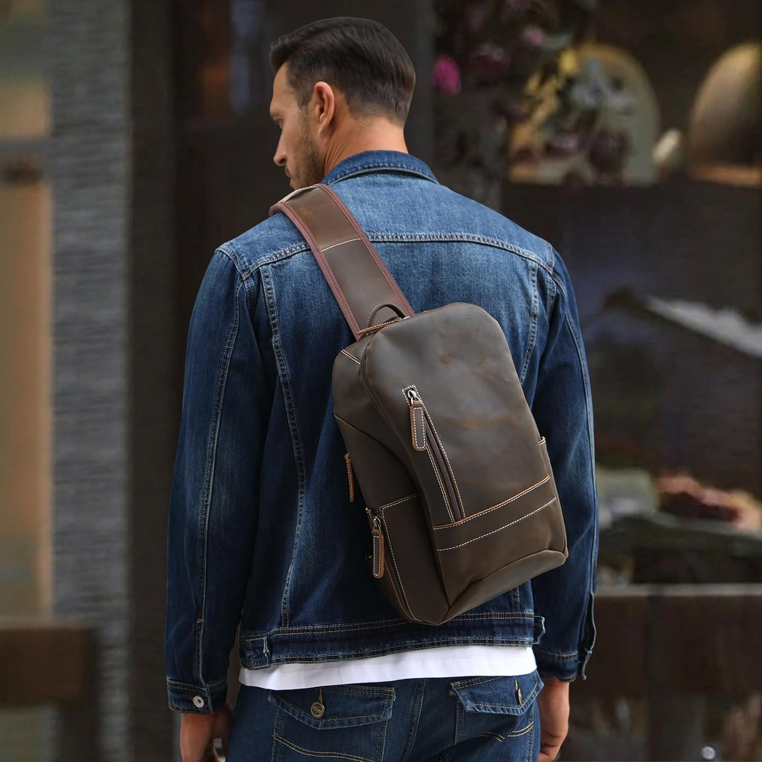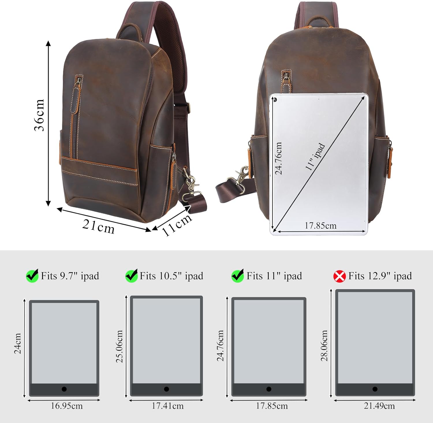 - 【Premium-Material】Hergestellt aus 2 mm dickem vollnarbigem Rindsleder, ausgestattet mit hochwertigen YKK-Reissverschlüssen und langlebigen Nähten. Der Rücken und der Schultergurt sind mit atmungsaktiver Polsterung ausgestattet, um Ihnen Komfort zu