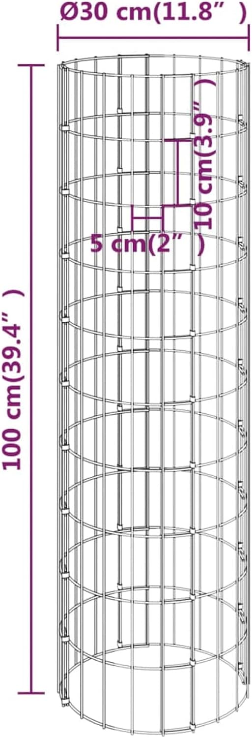 - Material: Verzinkter Stahl Abmessungen jeder Gabione: 30 x 100 cm (Durchmesser x H) Maschenweite: 10 x 5 cm Dicke: 3,5 mm Zusammenbau erforderlich: Ja