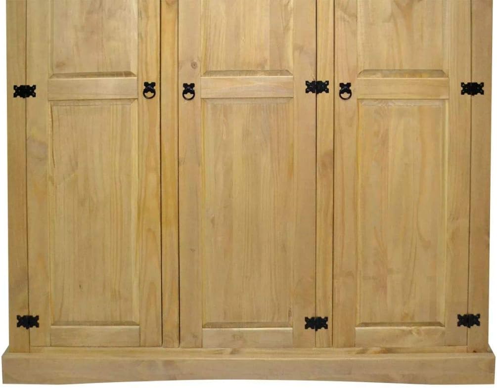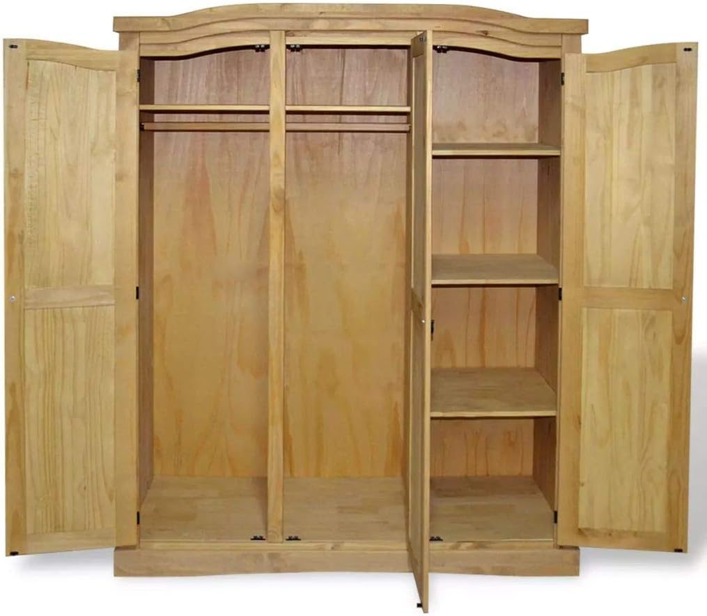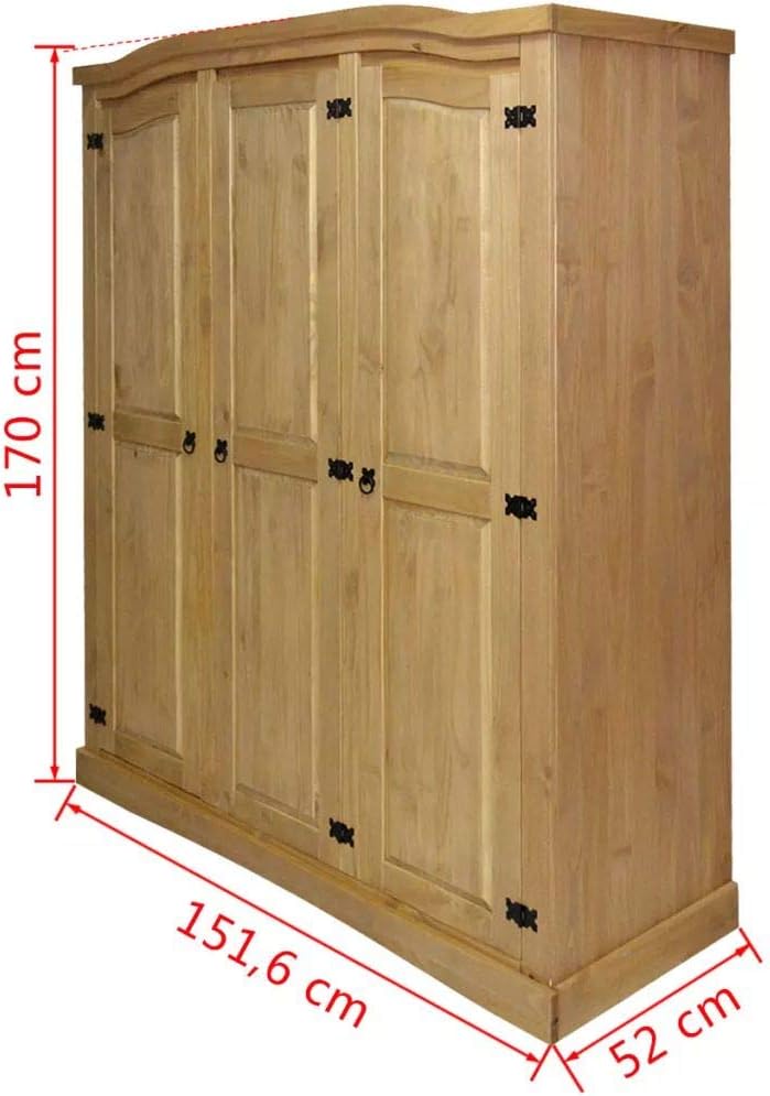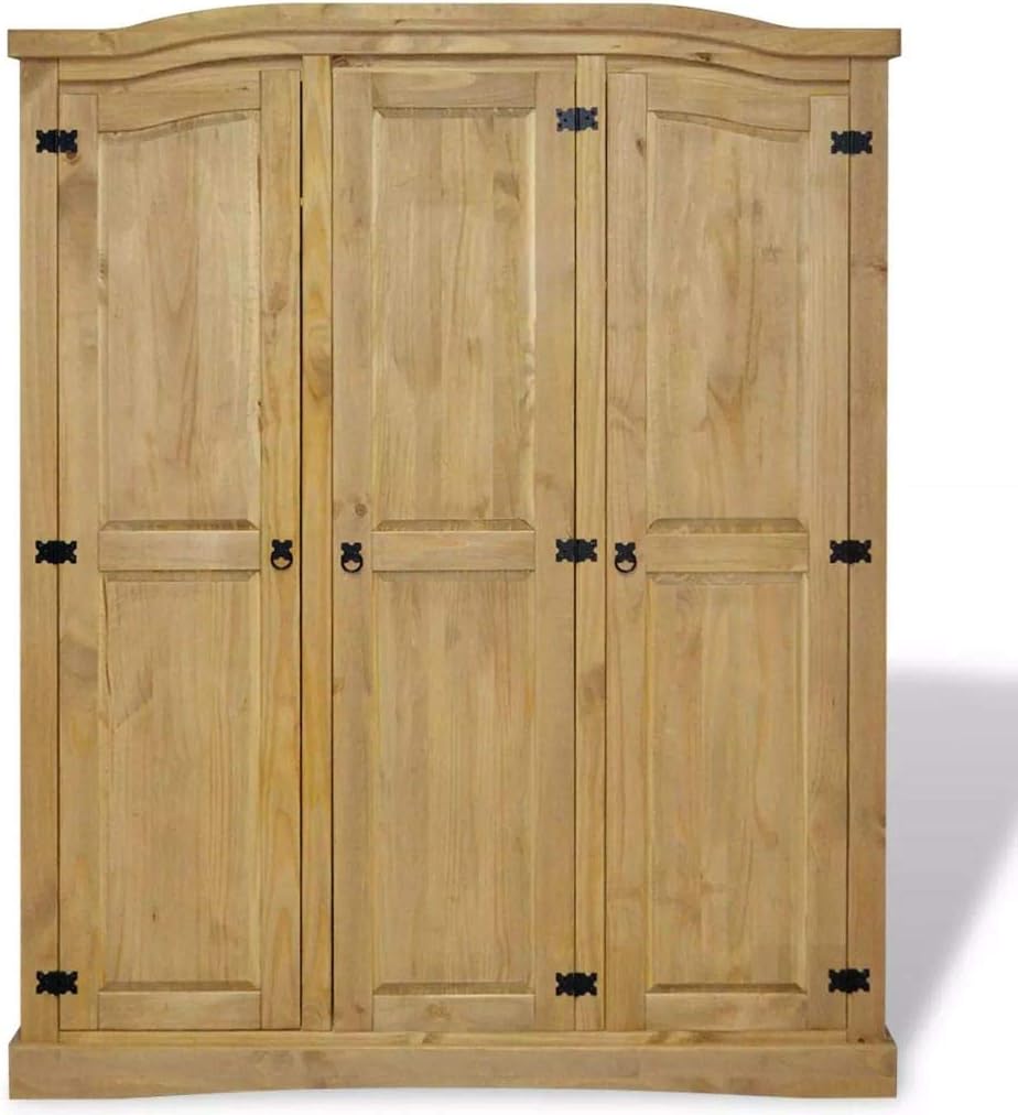 • Der Kleiderschrank hat ein schönes gewölbtes Design und 3 Türen. Der robuste Schrank ist aus massivem Kiefernholz gefertigt.