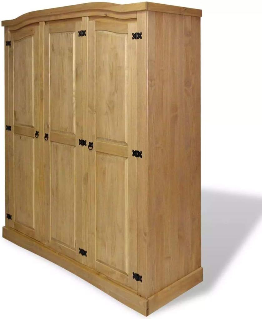 Tidyard Garderobenschrank Dielenschrank Kleiderschrank mit 3 Türen, im Mexiko-Stil, aus Kiefernholz,
