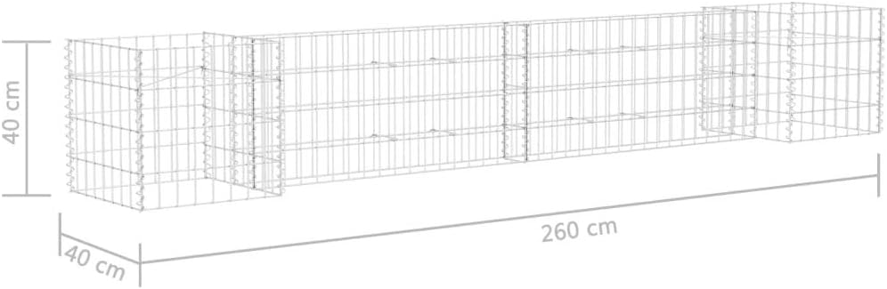- Technische Daten: Farbe: Silbern Material: Stahldraht Abmessungen: 260 x 40 x 40 cm (L x B x H)/260 x 40 x 150 cm (L x B x H) Maschenweite: 10 x 5 cm (L x B) Drahtdurchmesser: 3,5 mm Hohe Belastbarkeit Zusammenbau erforderlich: Ja