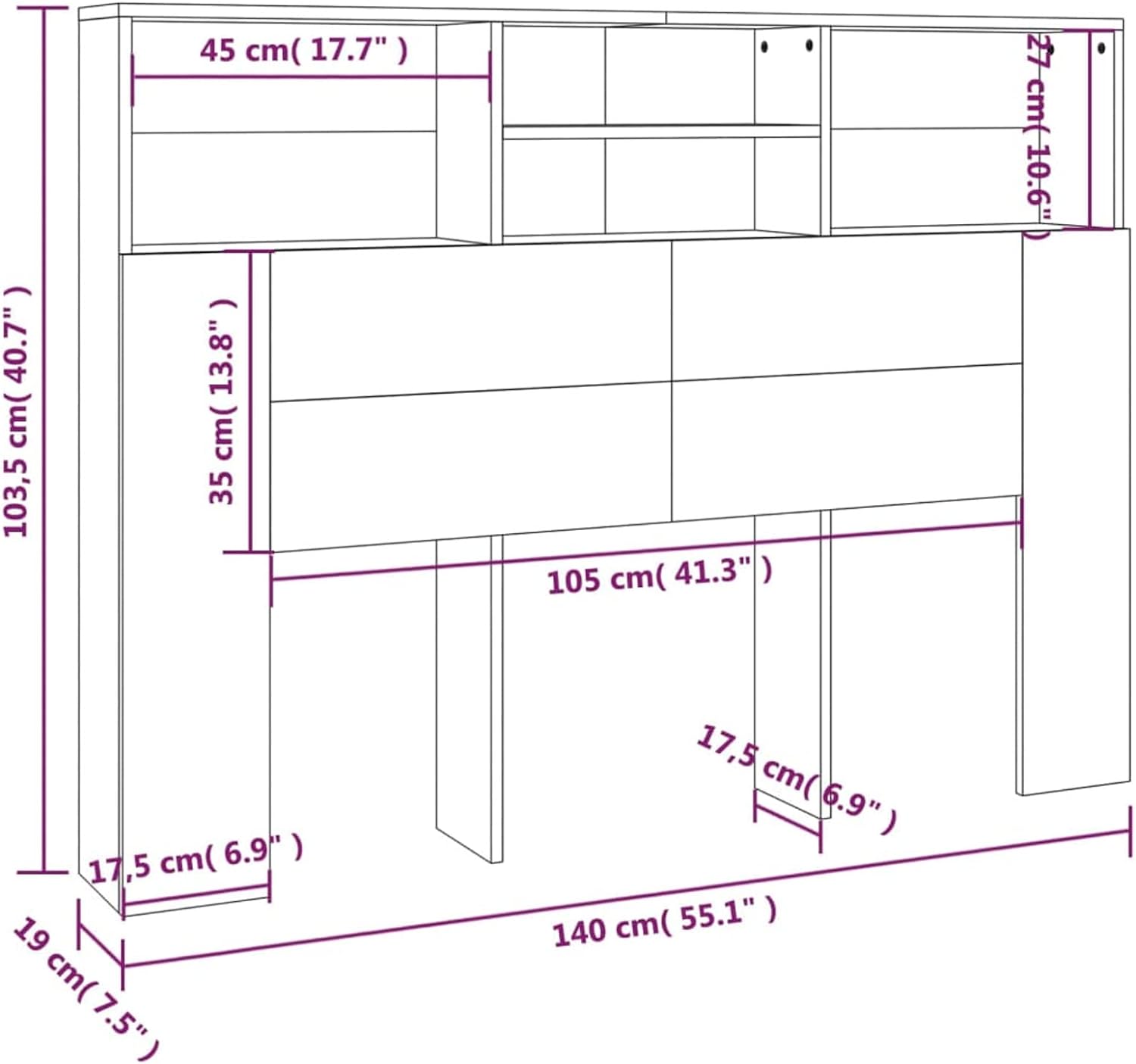 - Zusätzlicher Stauraum: Dieses Wand-Kopfteil verfügt über vier Fächer auf der Oberseite, in denen Sie Ihre Lieblingsbücher, Dekorationen und ähnliche Gegenstände unterbringen können.
