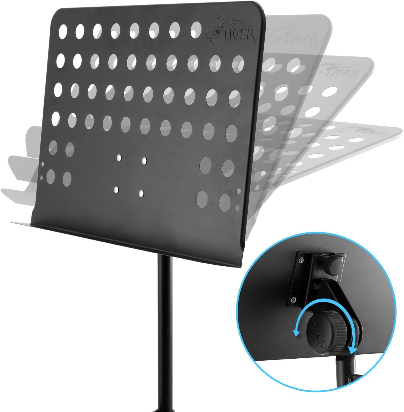 - Ein stufenloser Neigungsmechanismus macht es leicht, den richtigen Winkel zu finden