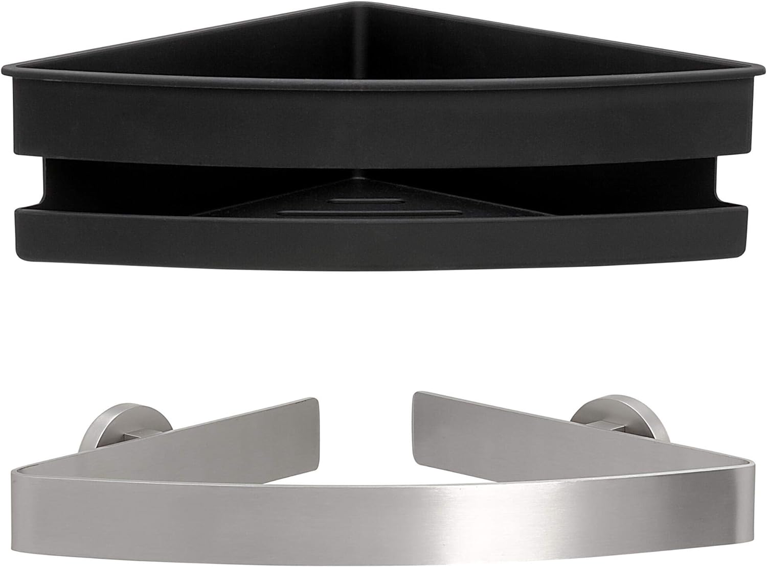 - Formschöne Duschablage aus hochwertigem Edelstahl in der Oberfläche gebürstet mit herausnehmbaren Einsatz aus hochwertigem, matt-schwarzem Kunststoff