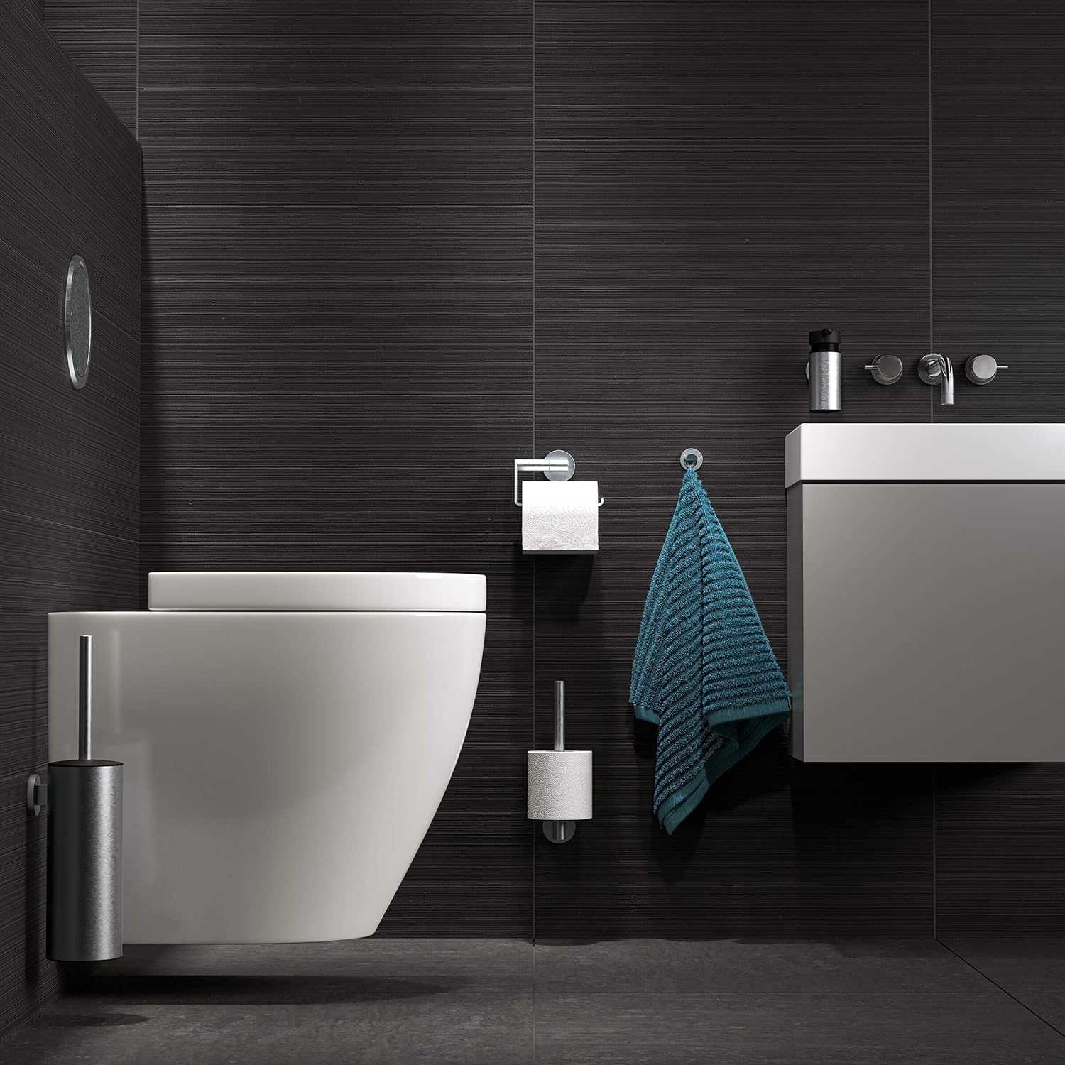 • Formschöner Reserverollenhalter aus hochwertigem Edelstahl in der Oberfläche gebürstet