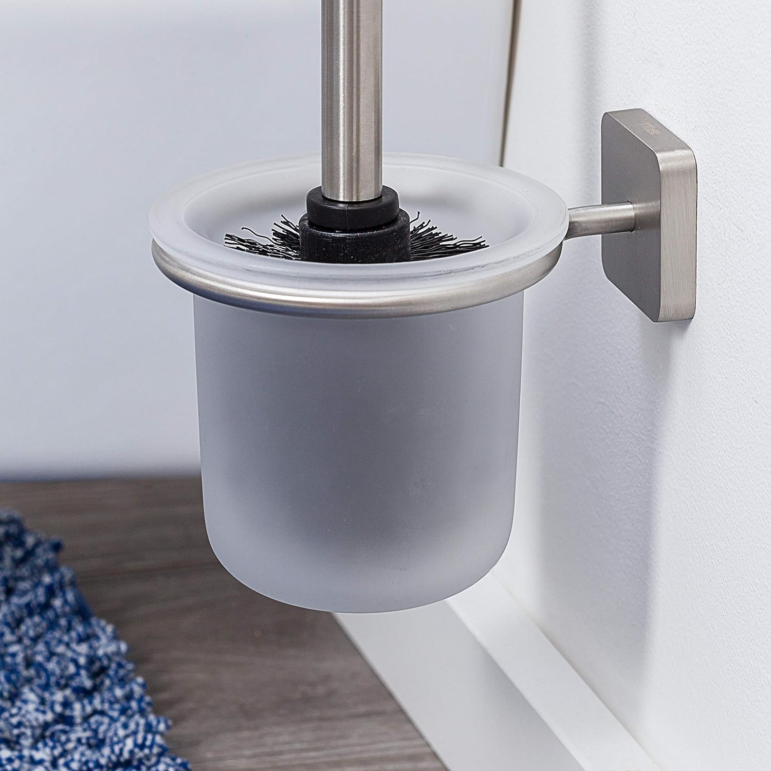 Tiger Onu Toilettenbürste, WC-Bürste aus gebürstetem Edelstahl, Glaseinsatz gefrostet Edelstahl Gebü