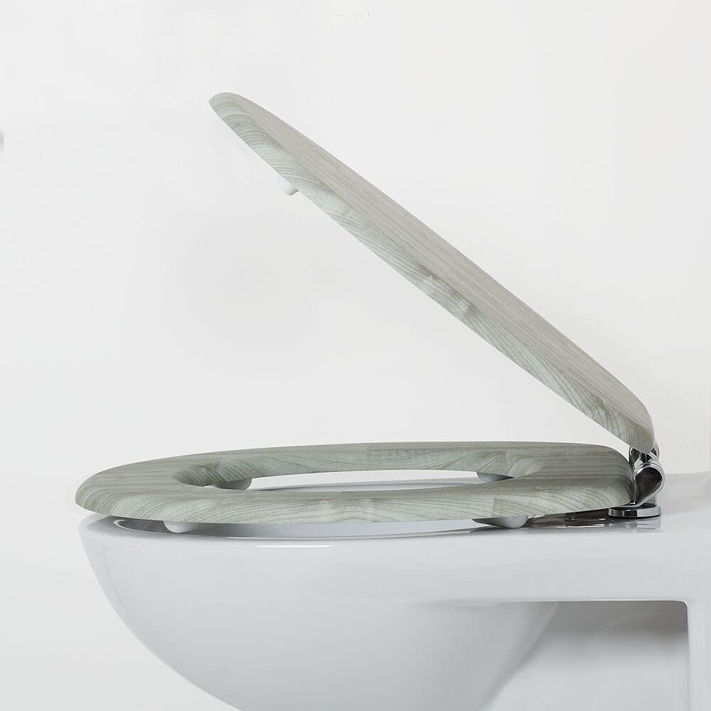• Soft Touch Oberfläche: Der Toilettendeckel bietet ein einzigartig komfortables Sitzerlebnis dank spezieller Beschichtung, die einen matten Look verleiht und sich nie kalt anfühlt. Die Holzoptik in Grau verleiht dem Badezimmer oder Gäste-WC einen