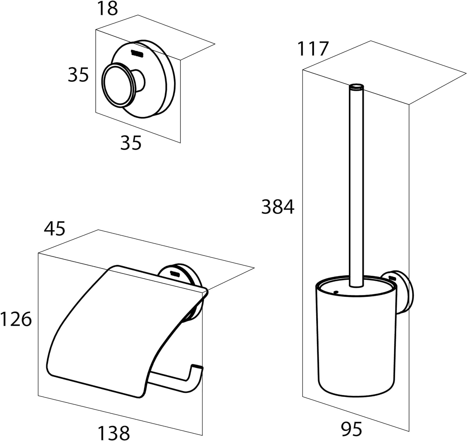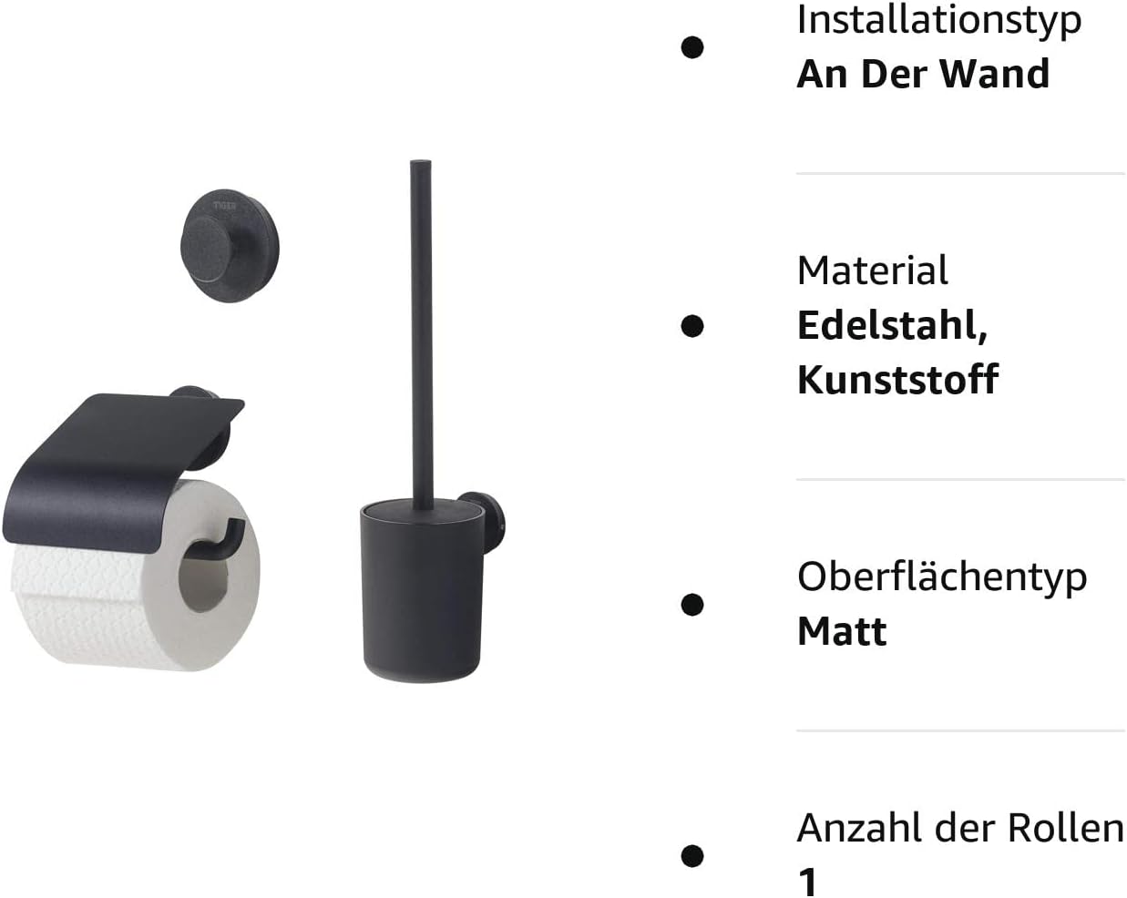 - Der Toilettenbürstenhalter und Toilettenpapierhalter lassen sich einfach mit dem beiliegenden Befestigungsmaterial (Fischer-Dübel und Edelstahlschrauben) montieren. Der Haken ist mit einer Selbstklebefolie ausgestattet