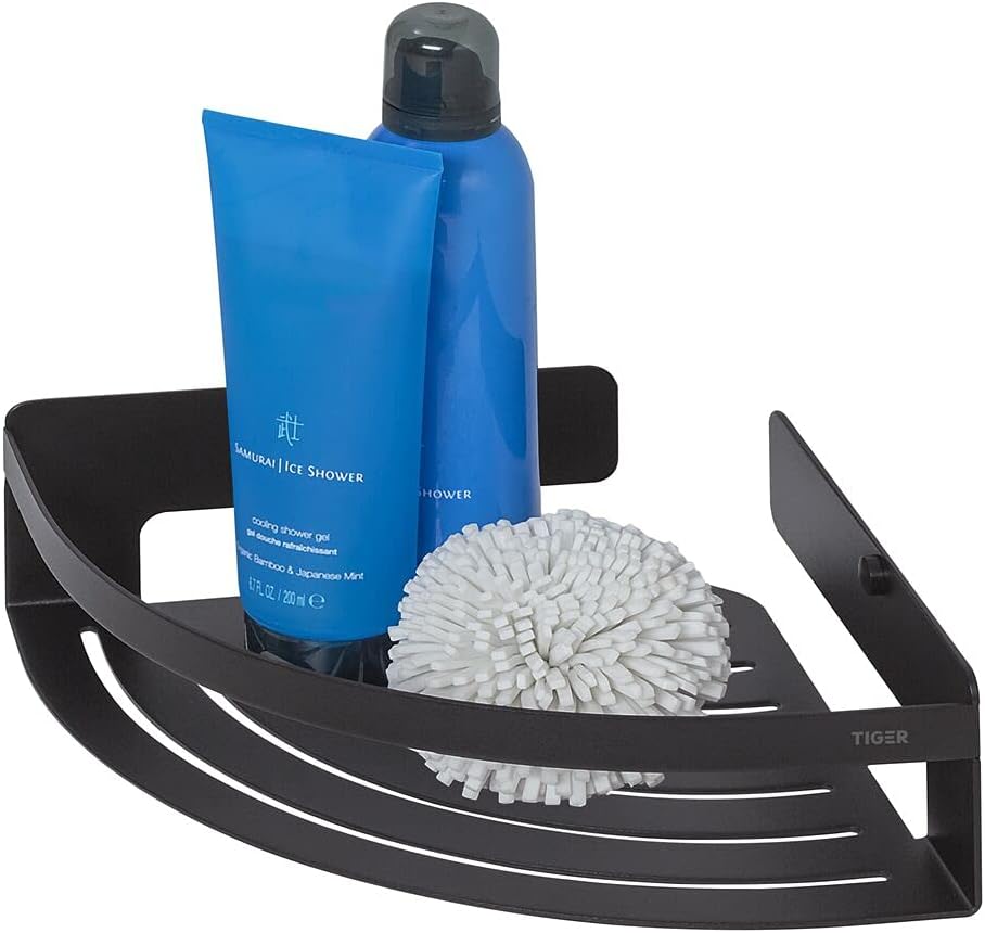 Tiger Duschkorb Caddy Eckversion gross, Duschablage aus Edelstahl, Schwarz pulverbeschichtet Schwarz