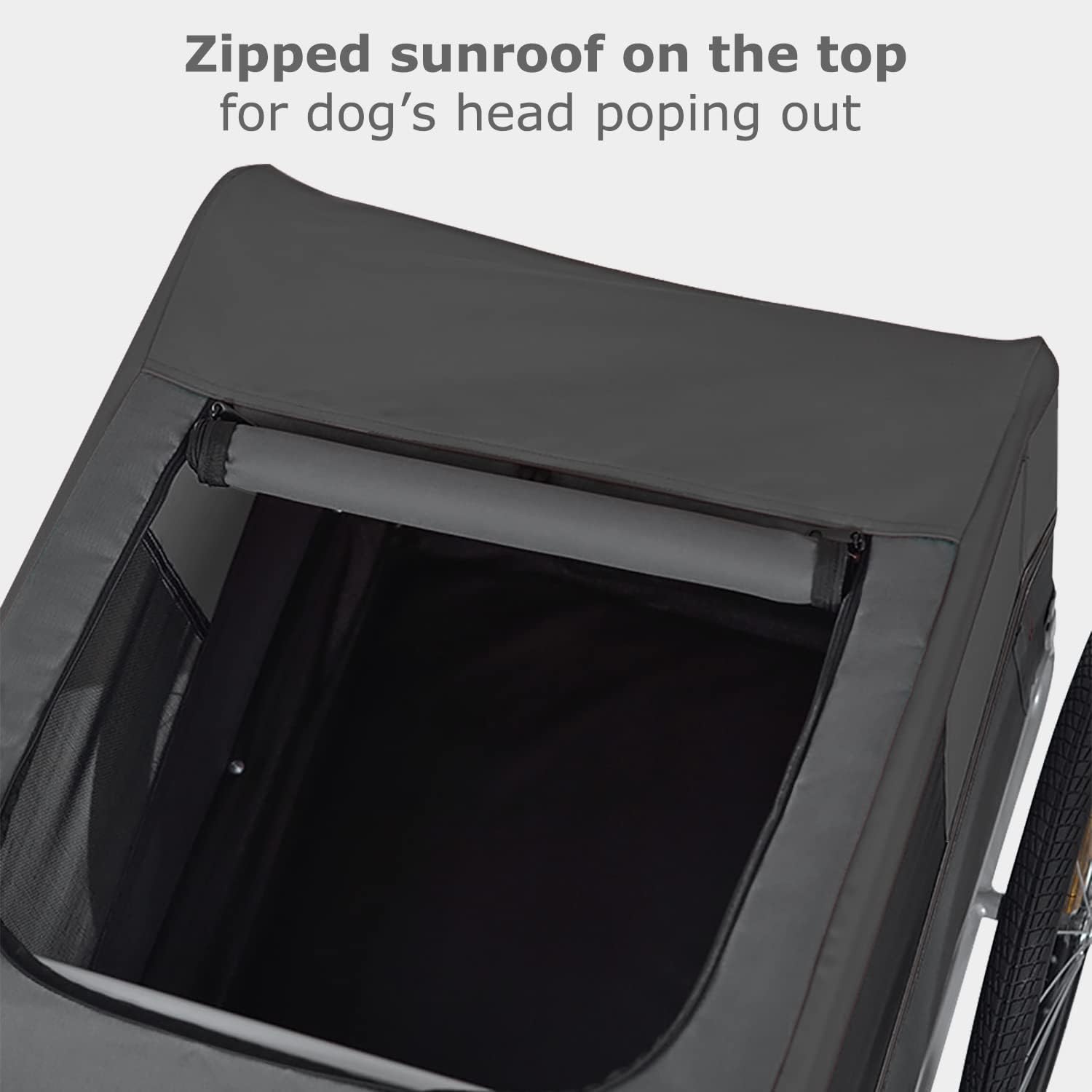 - Verstärkter Boden. Der Tiggo Hundeanhänger besitzt einen verstärkten Kabinenboden und somit eine hervorragende Unterstützung, wenn sich Ihre Hunde während der Fahrt aufsetzen oder hinlegen möchten.