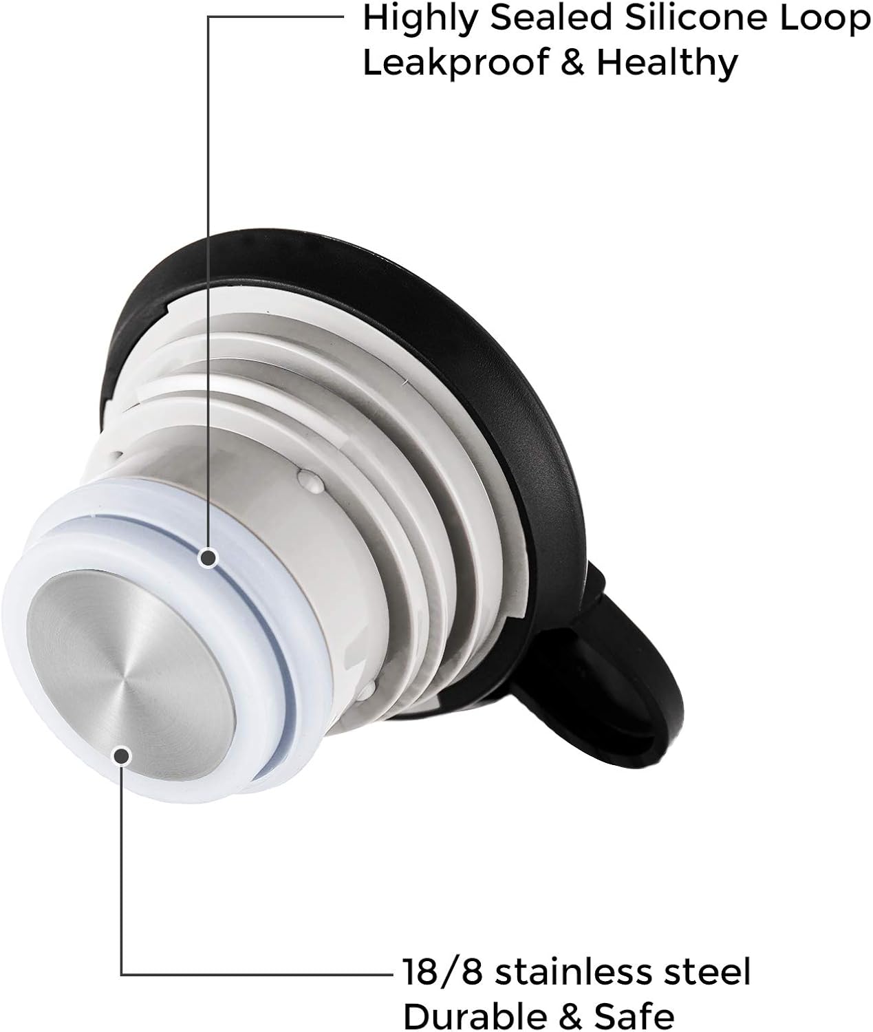 - Rillenauslauf und innere doppelte Silikonringe sind erhältlich, die ein Auslaufen beim Giessen von Wasser verhindern können. Unser auslaufsicherer Deckel ist mit einer neuen isolierten und luftdichten Konstruktion ausgestattet, die beim Schliessen