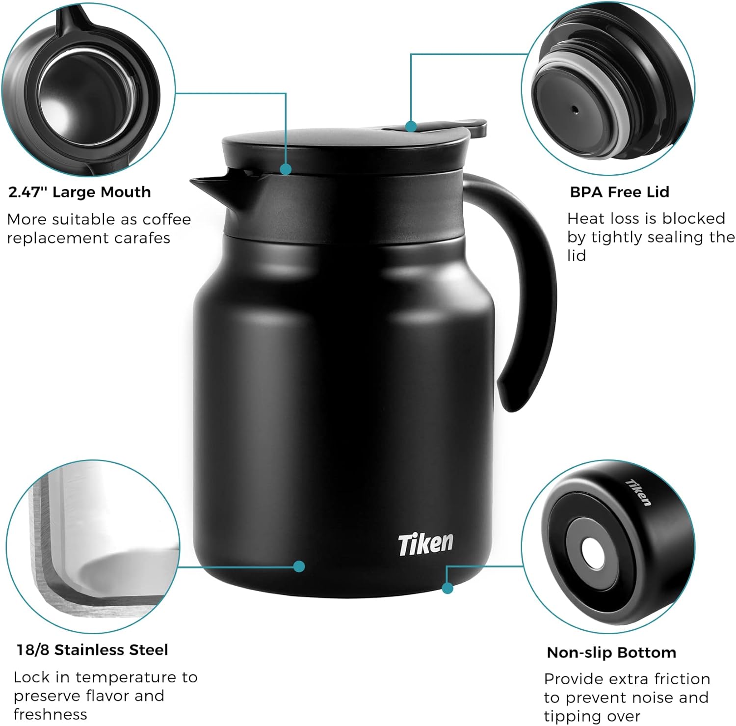 - Modern & Effektiv: Tiken Thermo-Kaffeekanne biete einen eleganten und modischen Stil und ein Fassungsvermögen von 1 Liter. Seine kompakte Grösse ist mit den meisten Kaffeemaschinen kompatibel und sein breites Öffnung passt auf viele