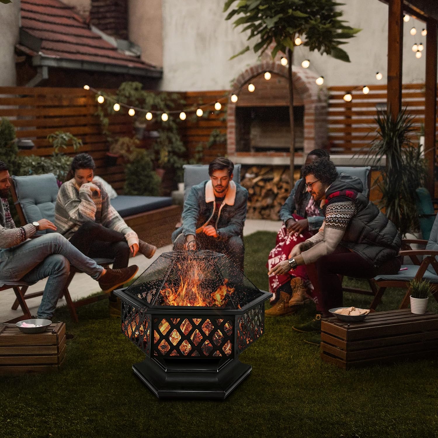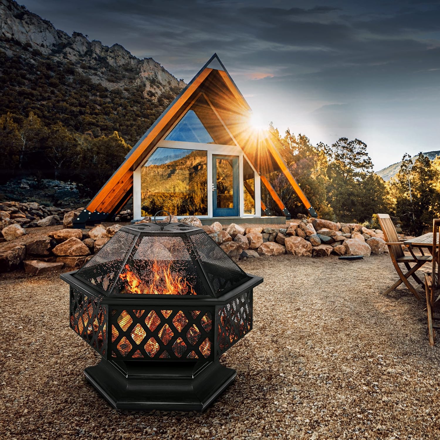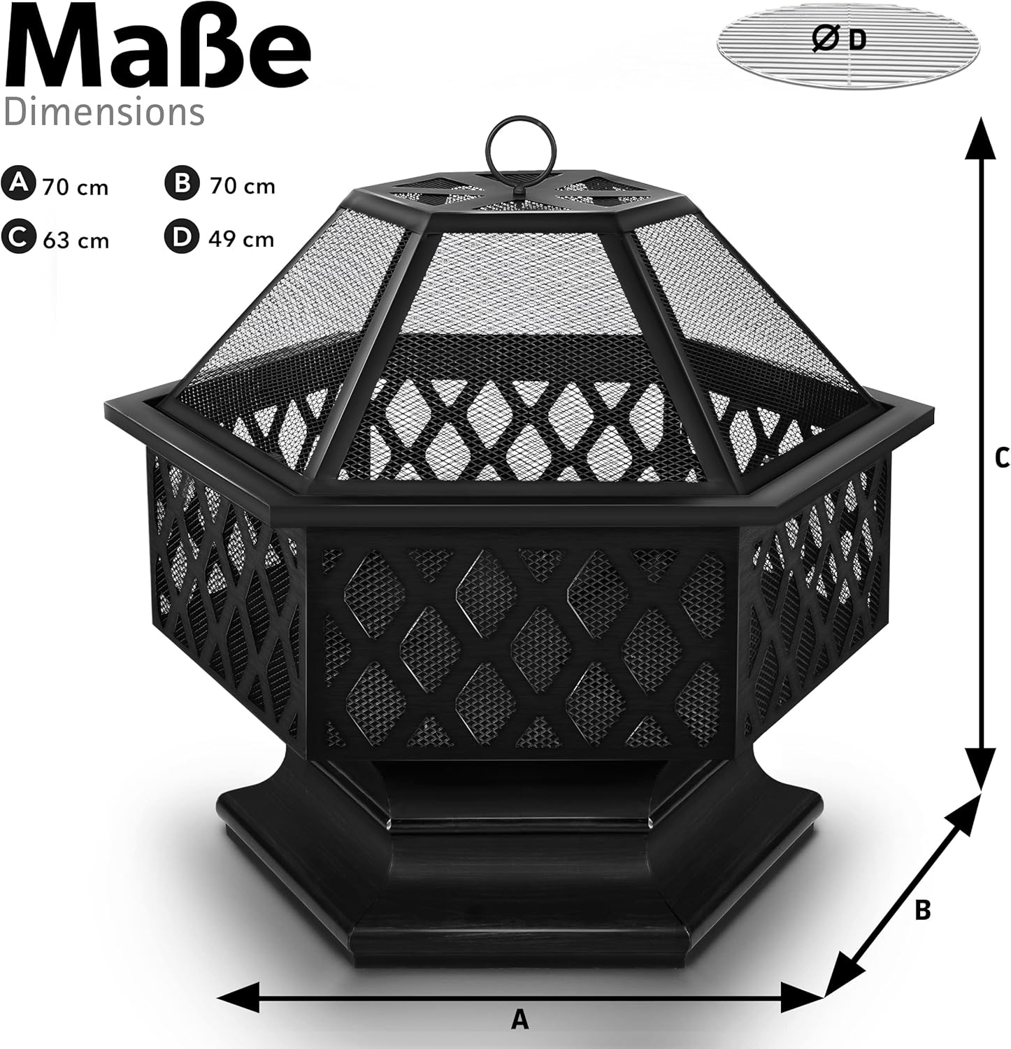 - PRAKTISCHES ZUBEHÖR: Das Zubehör der Feuerstelle umfasst ein Edelstahl Grill- und Kohlerost, Feuerschale, Funkenschutz, Grillbürste, Zange und Schürhaken, sowie eine Abdeckhaube.