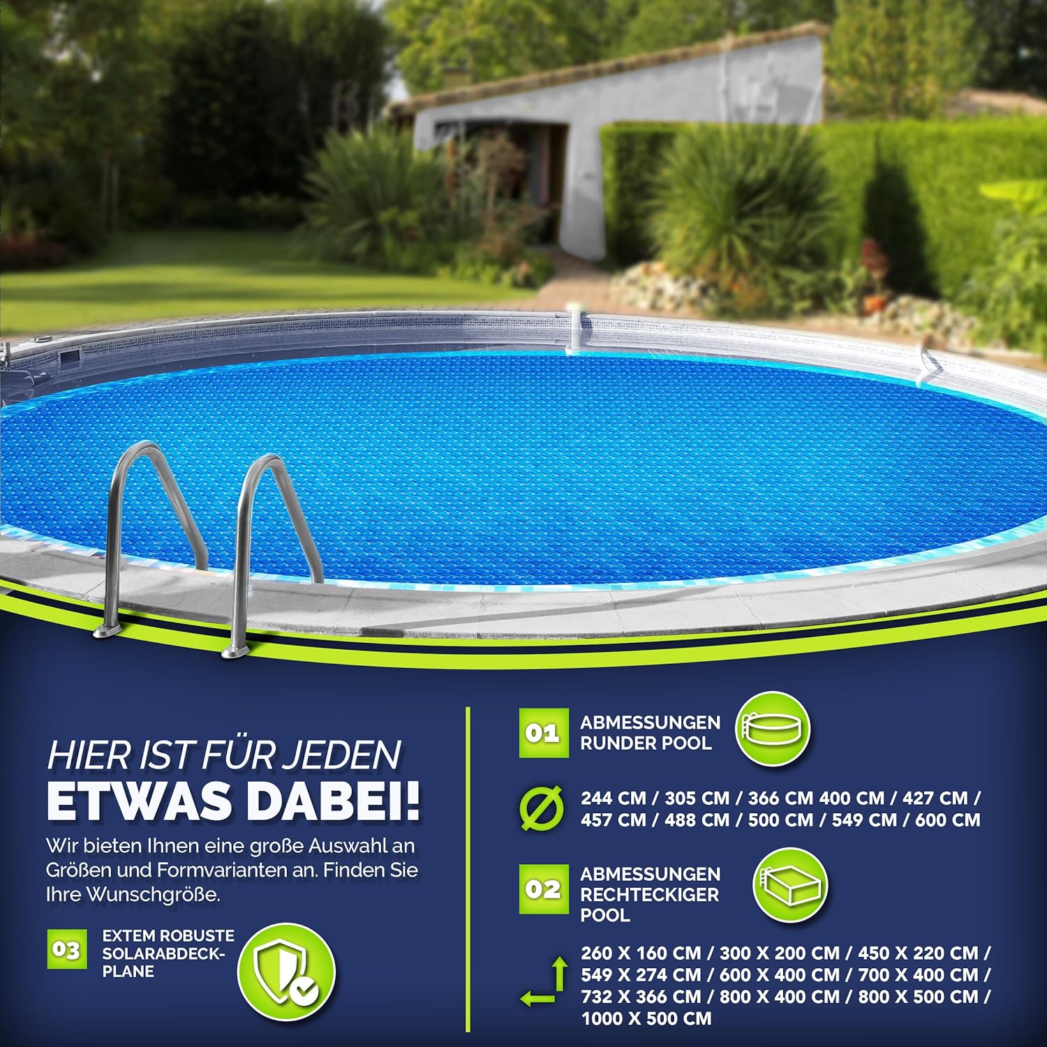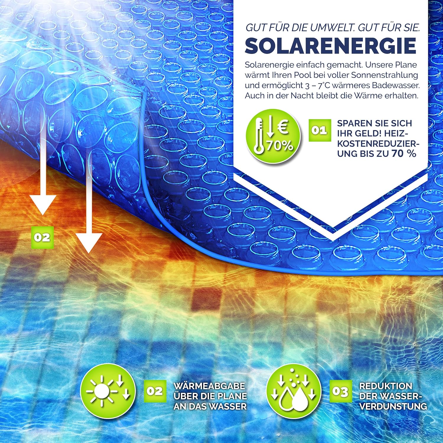 - UMWELTFREUNDLICHES ERHITZEN: Hochwertige Pool-Solarfolie für umweltfreundliches und sparsames Aufheizen des Wassers durch Sonnenenergie. Die Heizkostenersparnis liegt bei 70 Prozent.