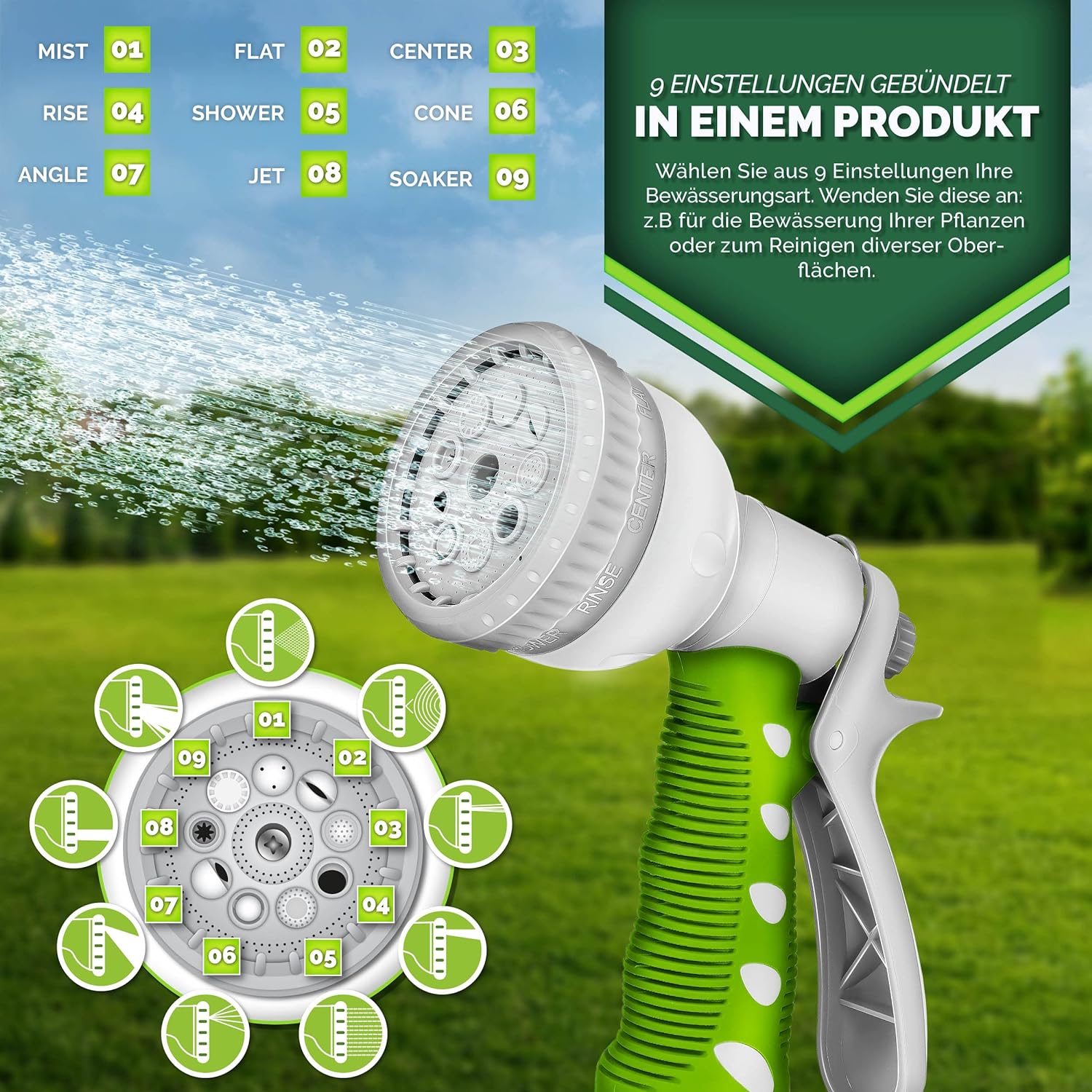 - GARTENBRAUSE MIT 9 FUNKTIONEN: Die Handbrause besitzt insgesamt 9 Funktionen. Zudem gibt es eine Feststellfunktion für den Sprühtaster. Geeignet für die Sprengung des Rasens, Bewässerung des Gartens, Blumen giessen oder die Reinigung der