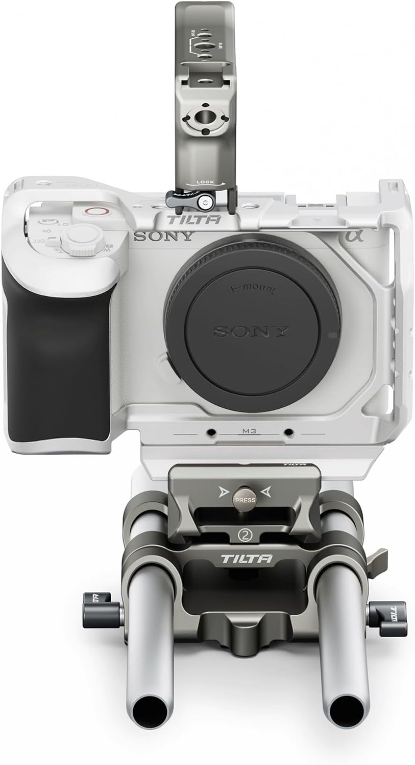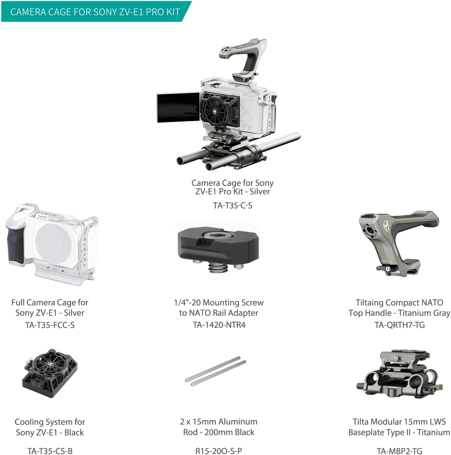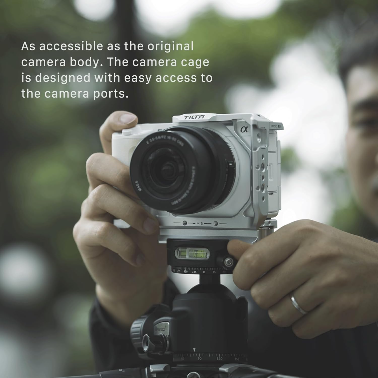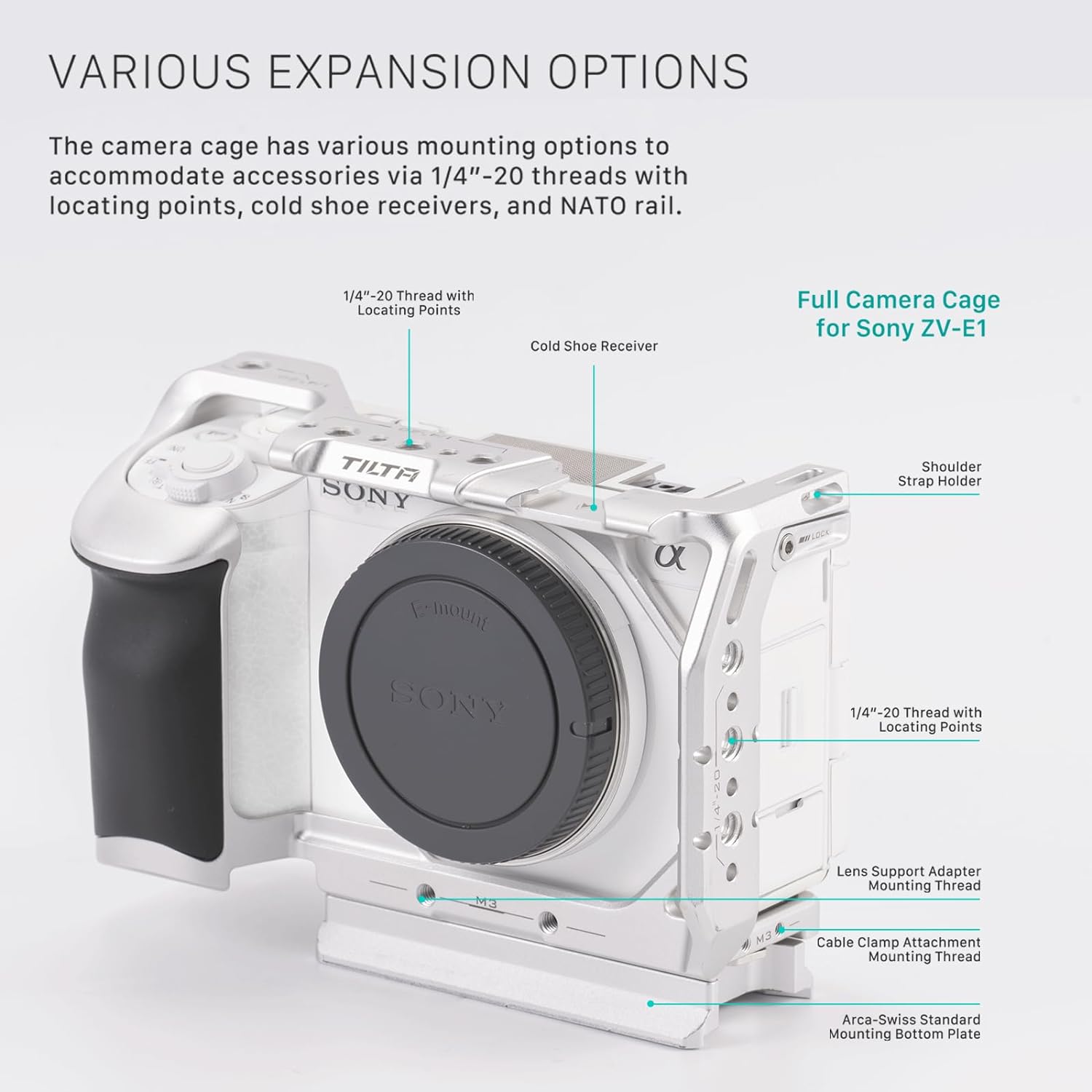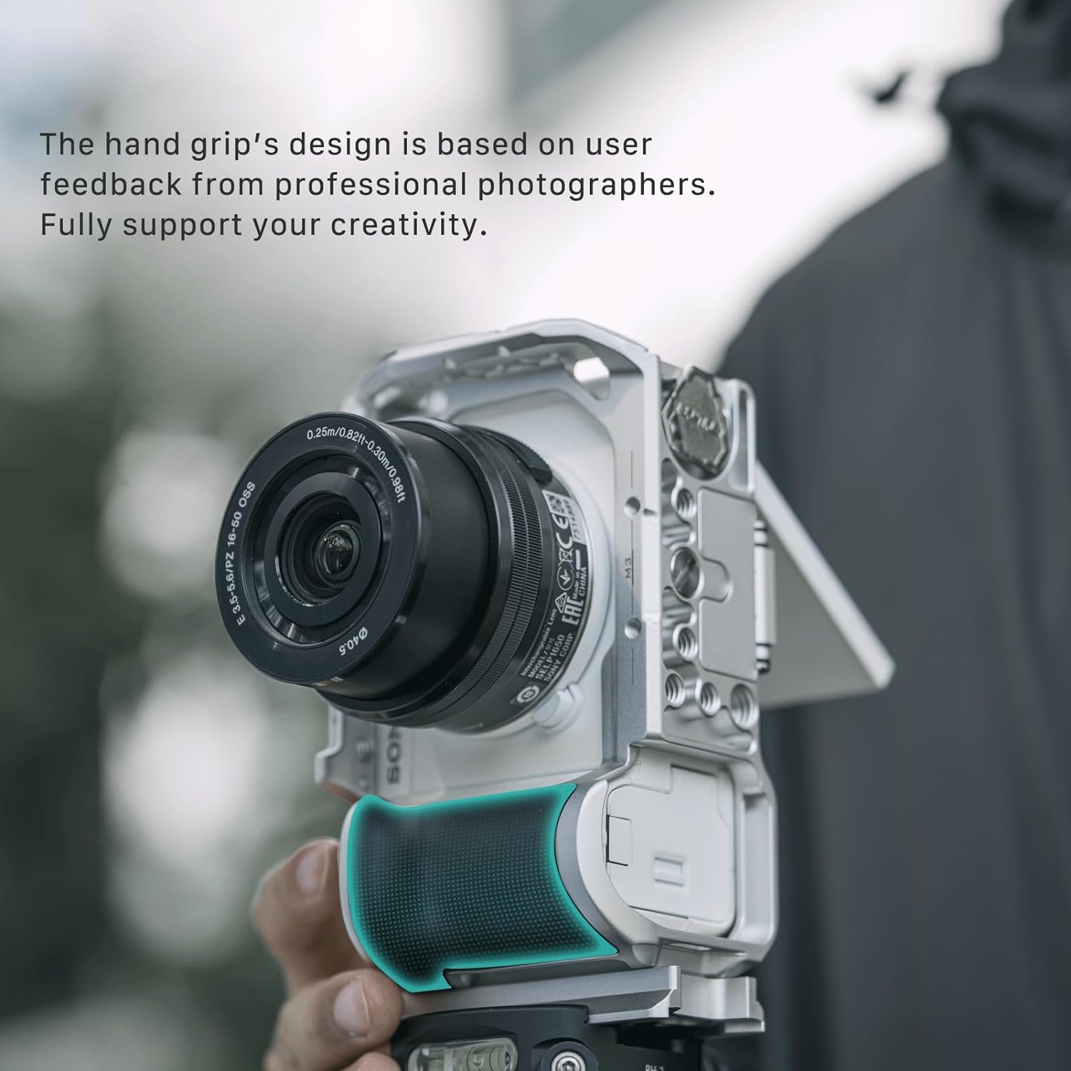 - Montagezubehör: Dieser Kamerakäfig bietet Platz für eine breite Palette von externem Zubehör über mehrere Befestigungsmöglichkeiten, einschliesslich eines Kaltschuh-Empfängers, NATO-Schiene, M3- und ¼-Zoll-20-Gewinde mit Positionierpunkten.