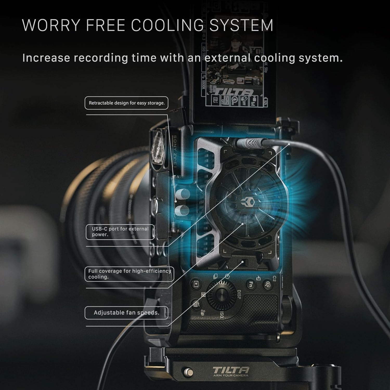 - Kühlsystem: Dieses System verhindert Überhitzung mit variablen Lüftergeschwindigkeiten und -leistungen über USB-C, sodass Sie länger fotografieren können, ohne zu überhitzen.