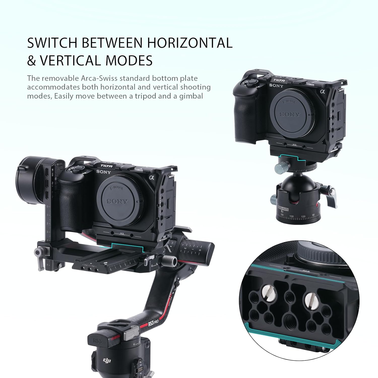 - Horizontale und vertikale Aufnahme: Diese Grundplatte ist die perfekte Option, um nahtlose Übergänge zwischen horizontalen und vertikalen Aufnahmekonfigurationen aufzunehmen. Konfigurationen sind einfach über abnehmbare ARCA-Platte auszutauschen.