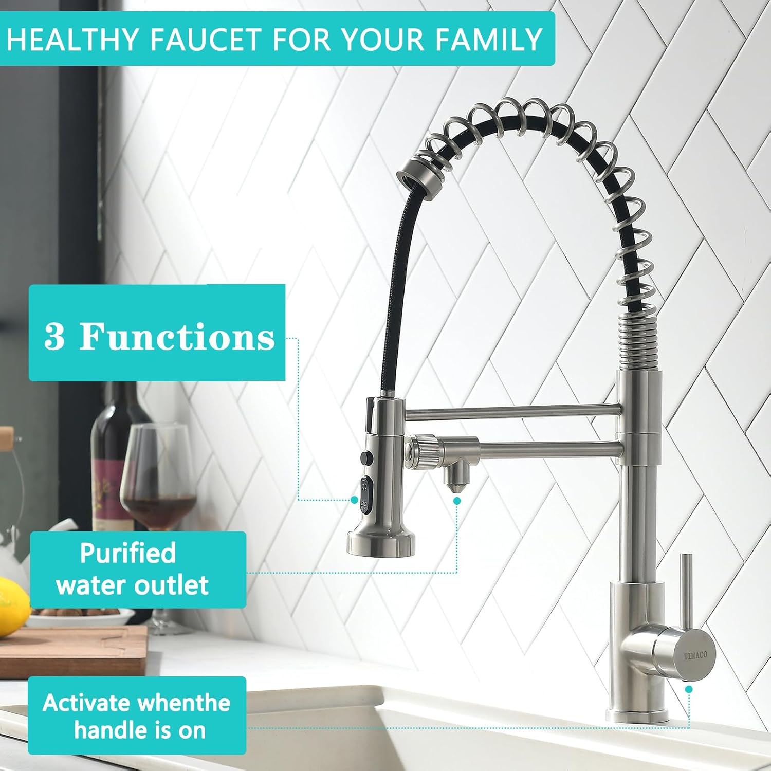 TIMACO 3 Wege Wasserhahn Küche Mit Ausziehbare Brause,Küchenarmatur-360° Drehbar,mit 3 in 1 Wasserha