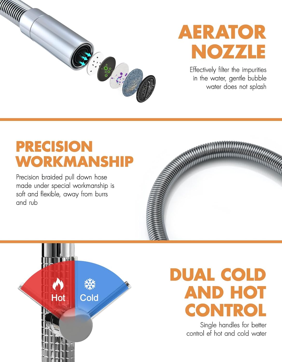 • Küchenarmatur:Standard 3/8 Zoll-Standard-Port, sehr langlebig.