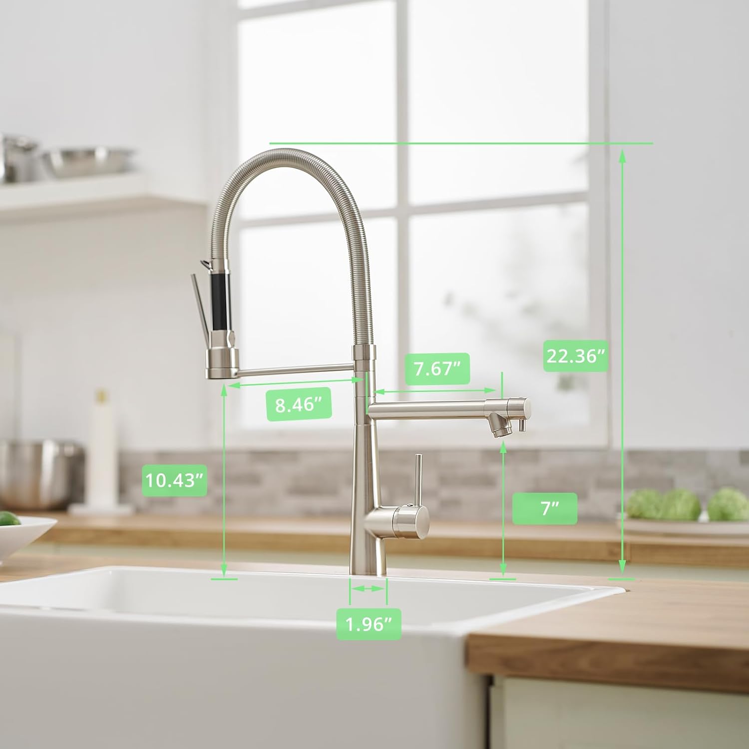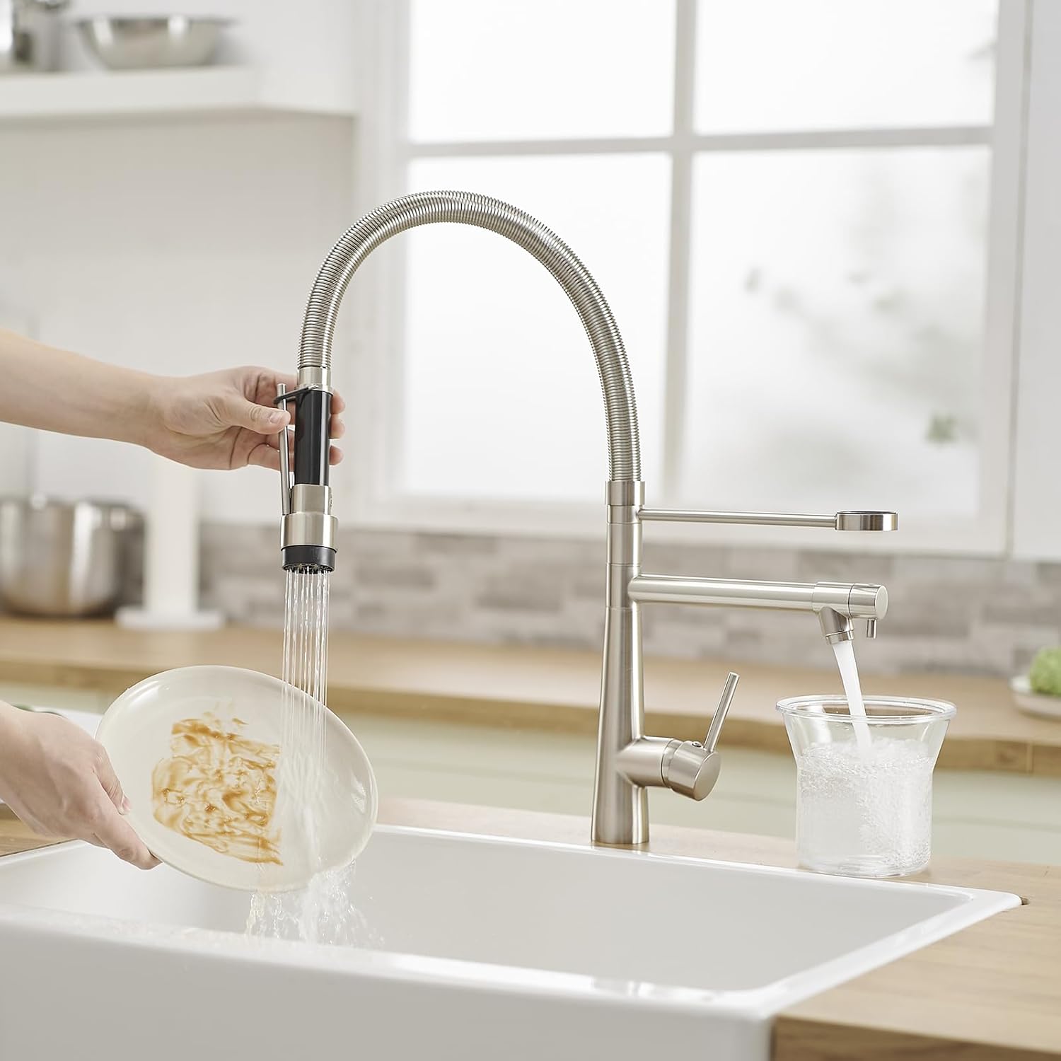 TIMACO Grosser Küchenarmatur mit Spiralfeder,22,36in, 360° Schwenkbare Spültischarmaturen mit Zwei A