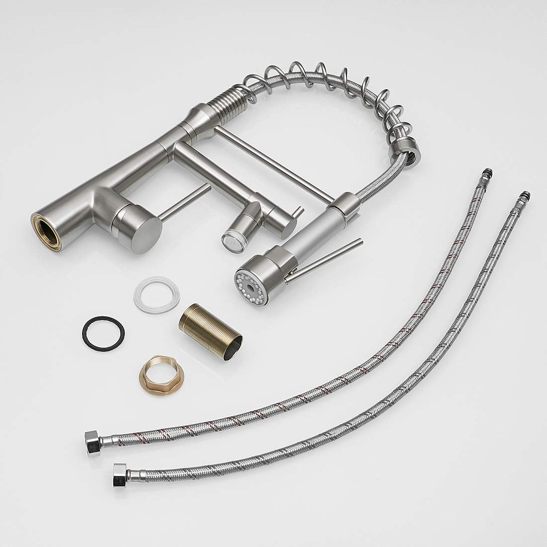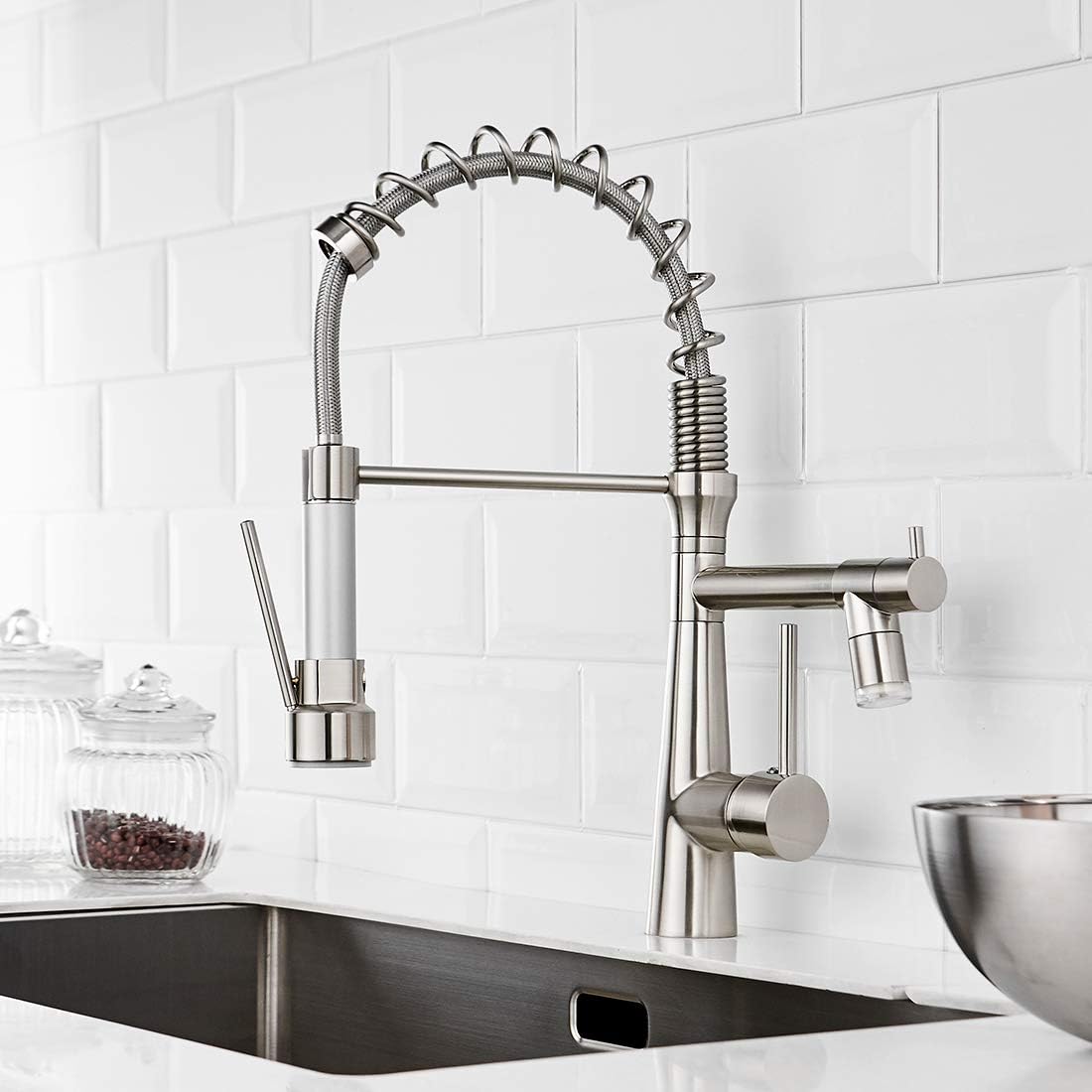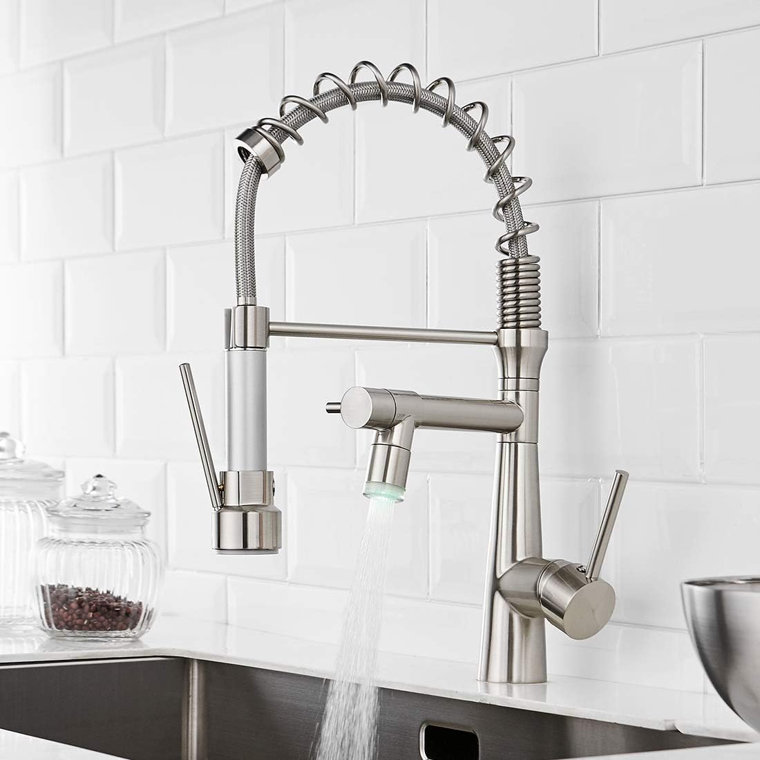 TIMACO LED Küchenarmatur mit Spiralfeder, 360° Schwenkbare Spültischarmaturen mit Zwei Auslauf, Wass