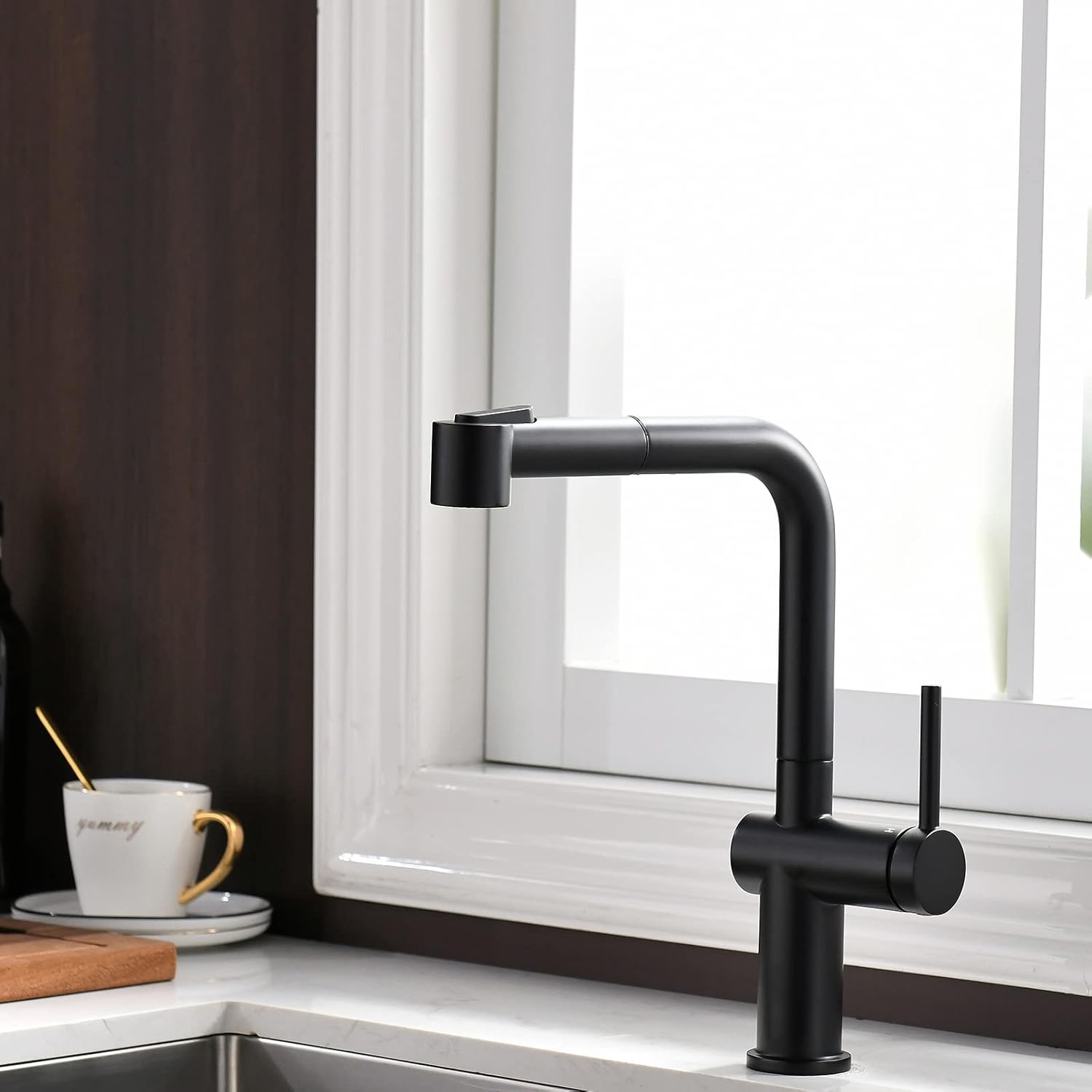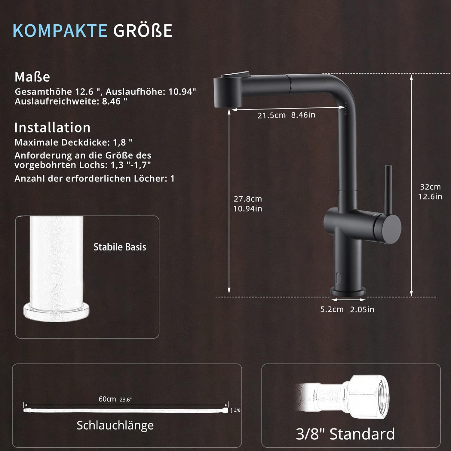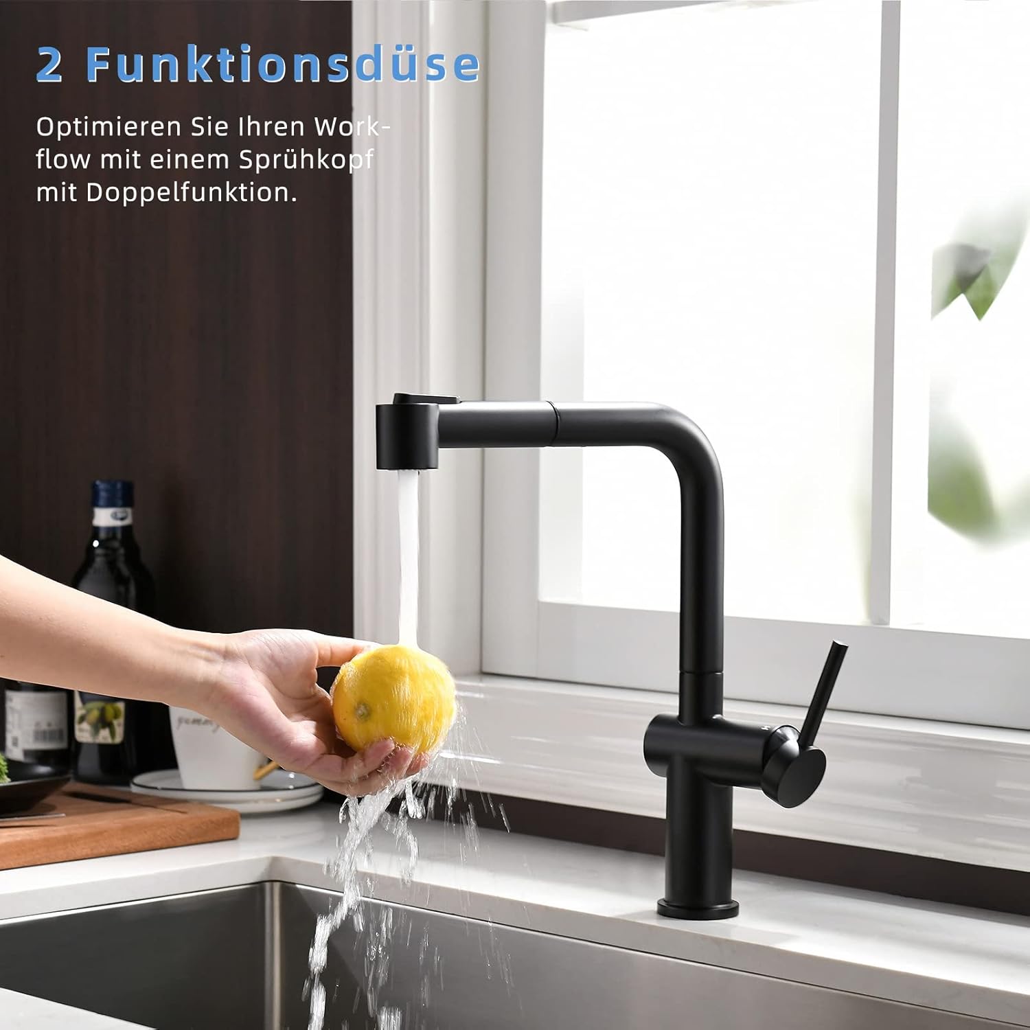 - 【Neueste Funktion】--- Die schwarze ausziehbare Küchenarmatur kann für Warm- und Kaltwasserfunktionen verwendet werden.