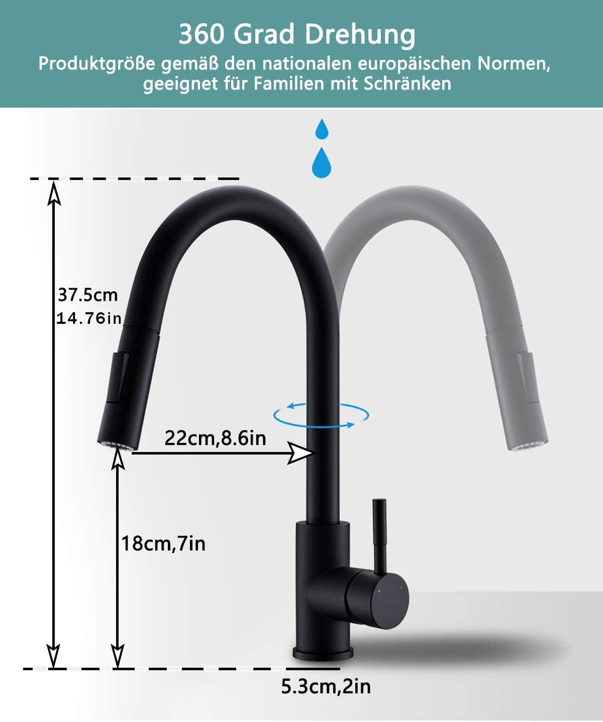 • 【Zwei-Sprühmodi und 360-Grad-Auslauf】 --- Mit zwei Sprühmodi können Sie auf Knopfdruck einfach vom spritzfreien, belüfteten Strahl zum leistungsstarken Vorspray wechseln. Schwarzer Küchenarmatur mit 360-Grad-Schwenkdüse bietet die gesamte