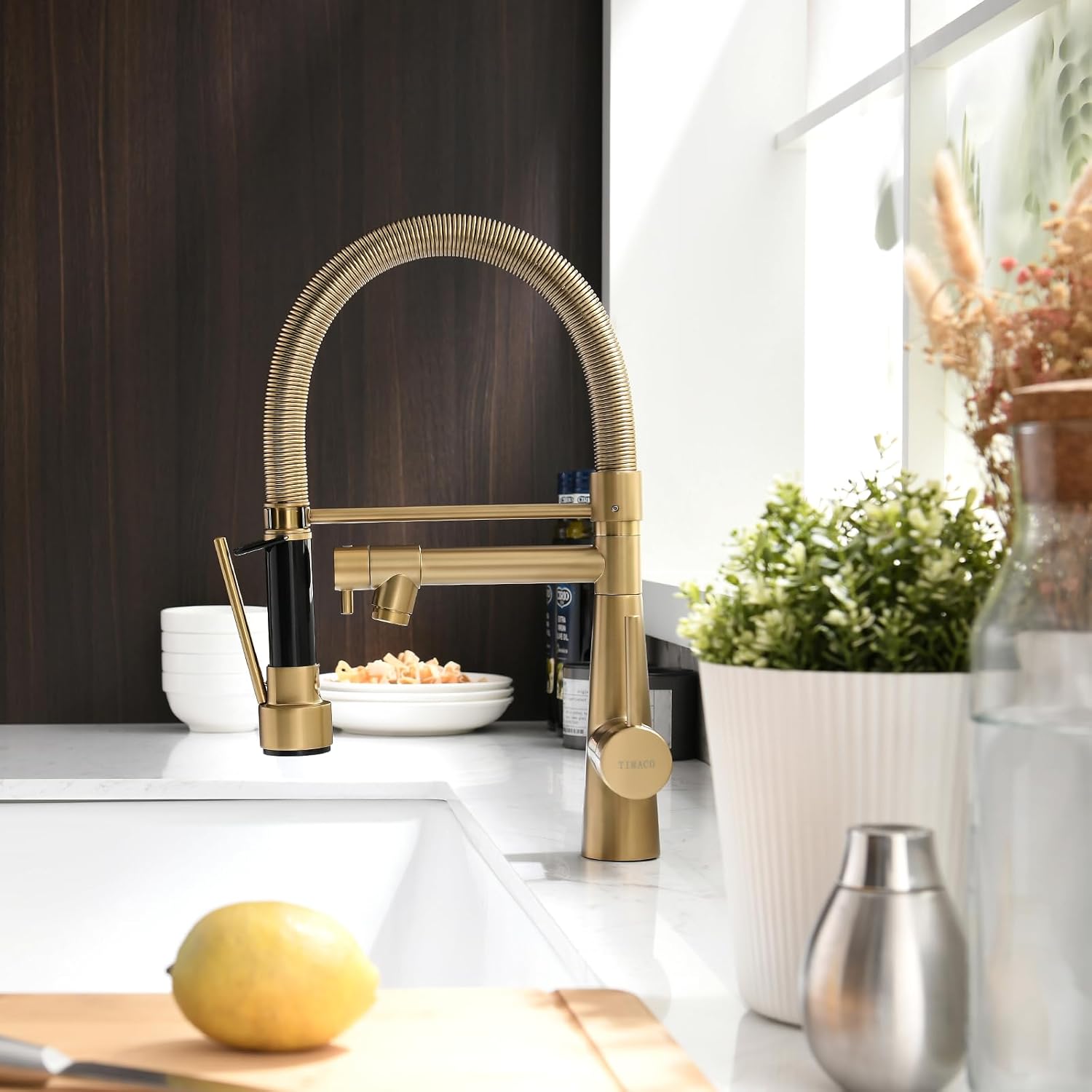 - 【BESTE WAHL】 Die kompakte Höhe von 16 Zoll passt unter fast jeden Küchenschrank. Einfache Steuerung der Wassertemperatur und des Durchflussvolumens durch einen einzigen Handgriff. 360-Grad-Schwenkauslauf mit hohem Lichtbogen.