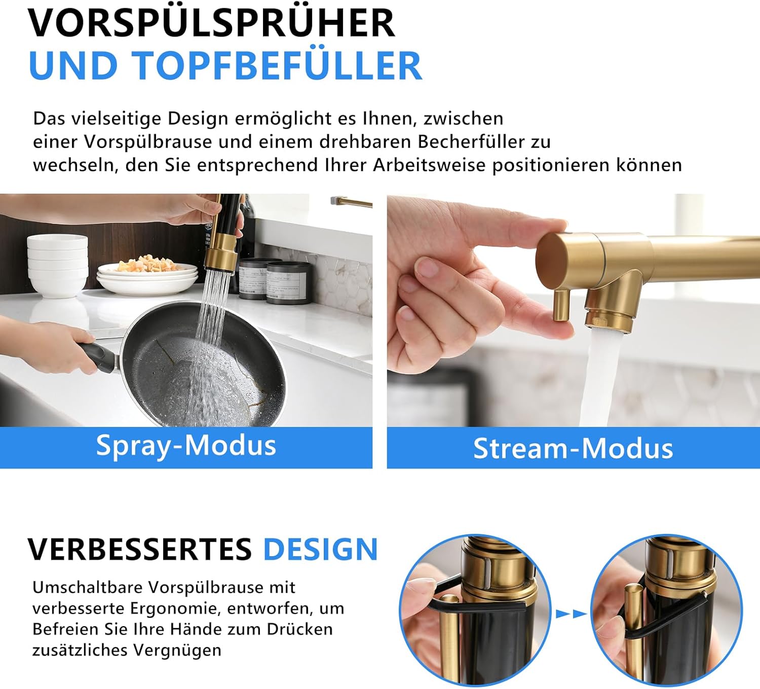 - 【Beziehung erhöhen】 Die Küchenarmaturen mit Pull-Down-Sprayer und separatem Auslauf,Sie können gleichzeitig eingeschaltet werden. Wenn Ihr Geliebter oder Mitbewohner mit einem Sprühgerät ein Abendessen zubereitet oder Geschirr spült, können