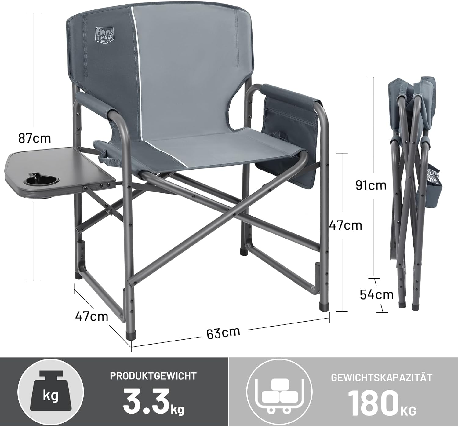 - 【SCHWERLAST 】Timber Ridge campingstuhl unterstützt bis zu 180 kg. Die Sitzfläche besteht aus Polyester und hat stabilen Aluminiumrahmen, Masse wenn entfaltet: 63 x 45 x 87 cm, Höhe der Rückenlehne von der Oberseite bis zur Sitzfläche: 41,9 cm.