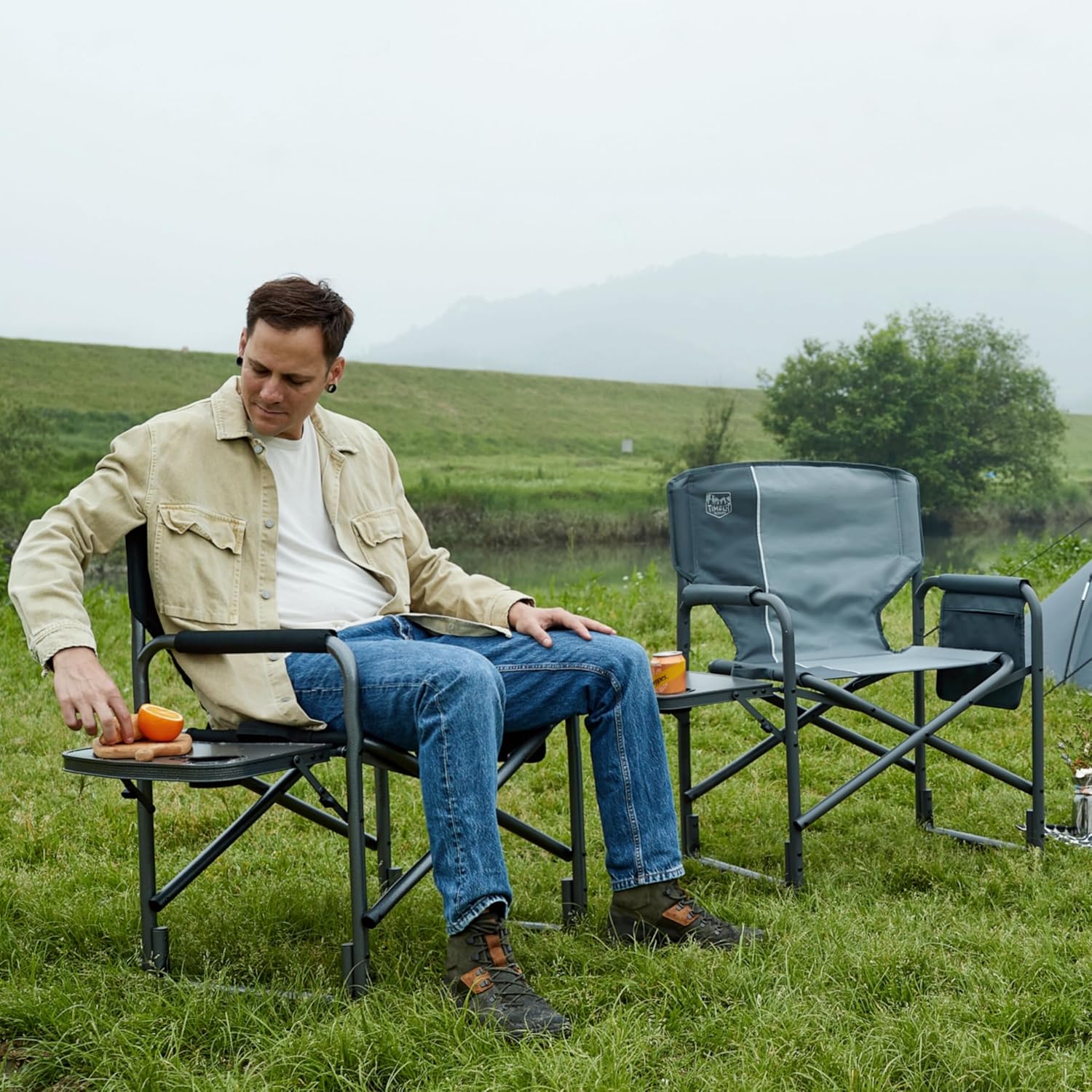 - 【KOMFORTABLES DESIGN】Gepolsterte Armlehne und aufklappbarer Seitentisch für Handys, Getränke oder zur Aufbewahrung von allem, was zu einem Buch passt. Dieser Klappstuhl besteht aus atmungsaktivem Stoff, um Sie während der heissen Sommermonate