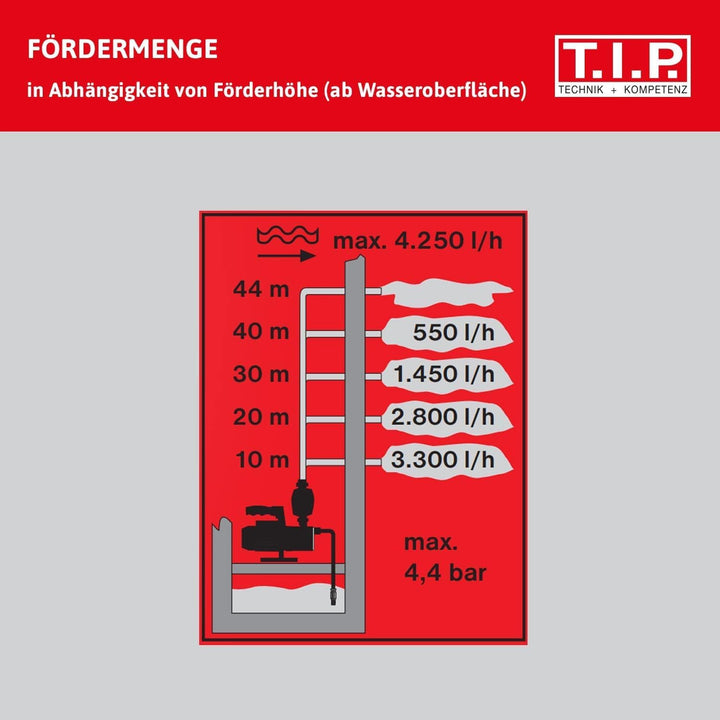 T.I.P. Hauswasserautomat Edelstahl (4.250 l/h Fördermenge, 44 m Förderhöhe, 4,4 bar Druck, 900 W, El