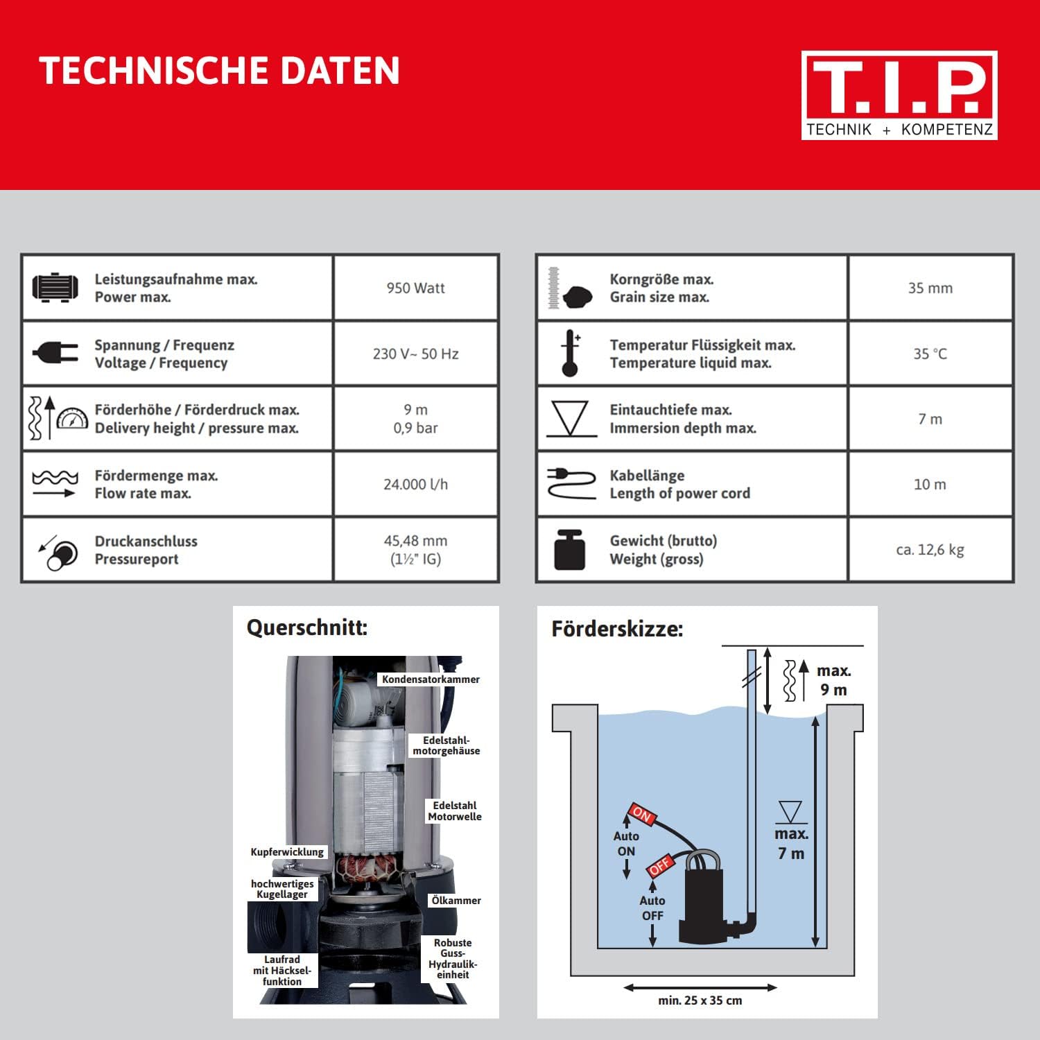 - Förderhöhe/Druck max.:9m/0.9bar - Fördermenge max.: 24.000 l/h